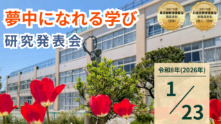 学校全体 研究発表会のご案内(1月23日) このたび、本校では 令和8年1月23日(金)午後 に研究発表会を開催いたします。当初は「授業DX」を中心に研究を進めてまいりましたが、取組を深める中で、 「すべての子どもたちを深い学びへと誘うにはどうすればよいか」という本質的な問いへと研究... 2025.12.18 学校全体校内研究校長挨拶等配布文書