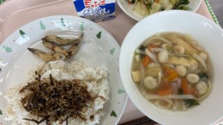 学校全体 奈良の味わい給食 麦ごはん、かみかみふりかけ、きびなごの唐揚げ、吉野汁、茹で野菜の味噌ドレッシング、牛乳麦ごはんの上に、香ばしいかみかみふりかけをのせ、噛むほどに旨味が広がる一皿に仕上げました。小ぶりながらも骨まで食べられるきびなごの唐揚げは、学年に応じて本... 2026.01.20 学校全体給食