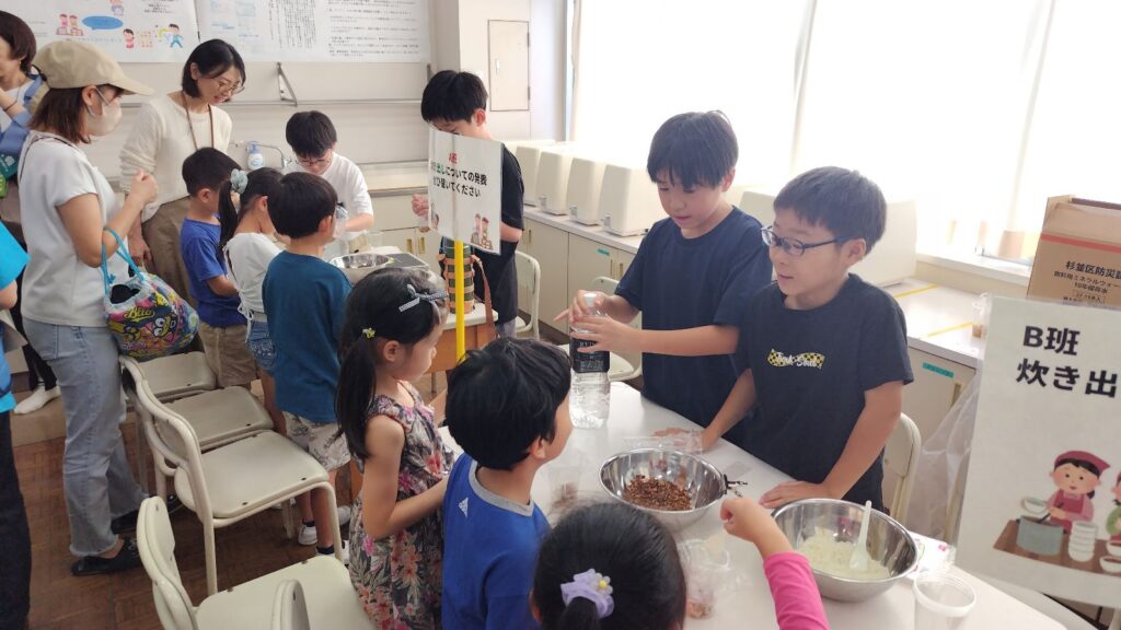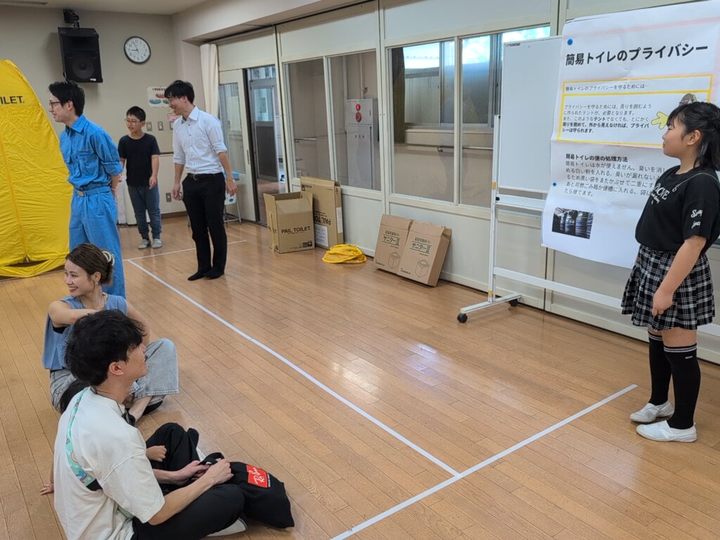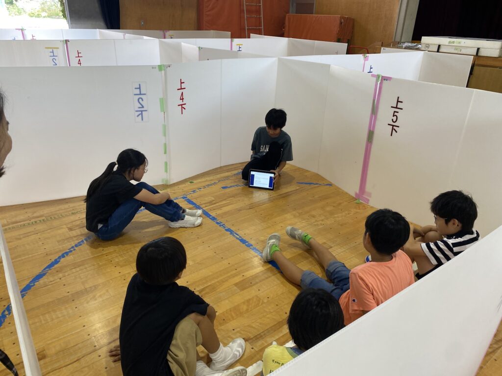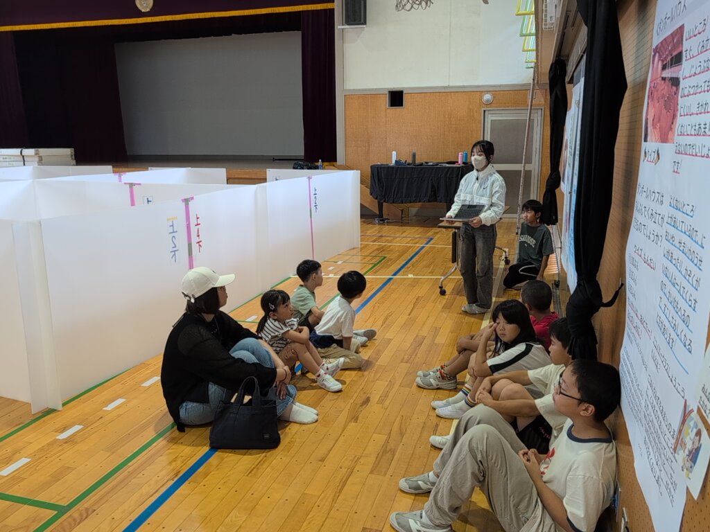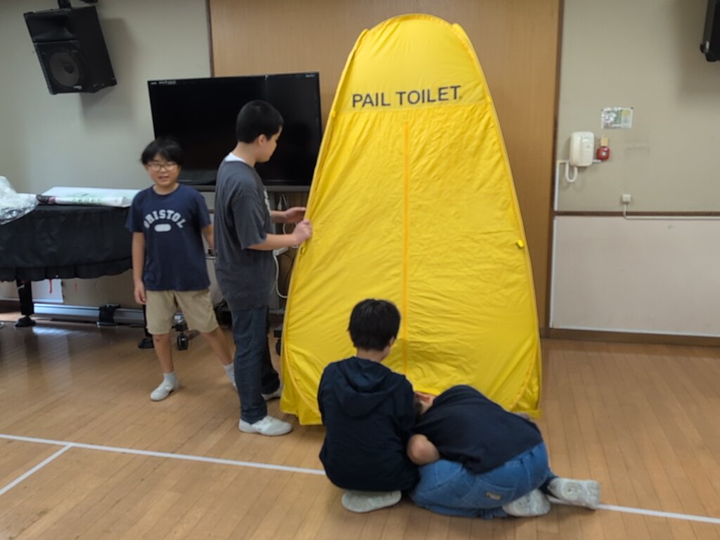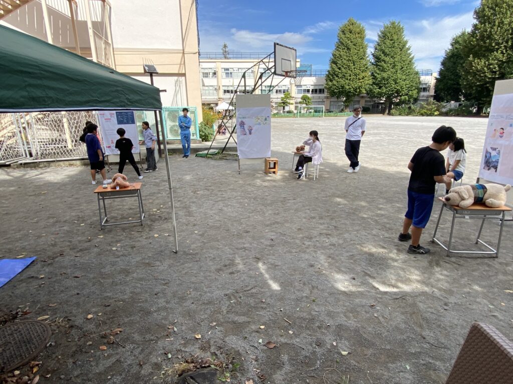 5・6年生の子供たちは、震災救援所にある様々なブースを理解し、被災者の方々に説明し体験してもらいます。