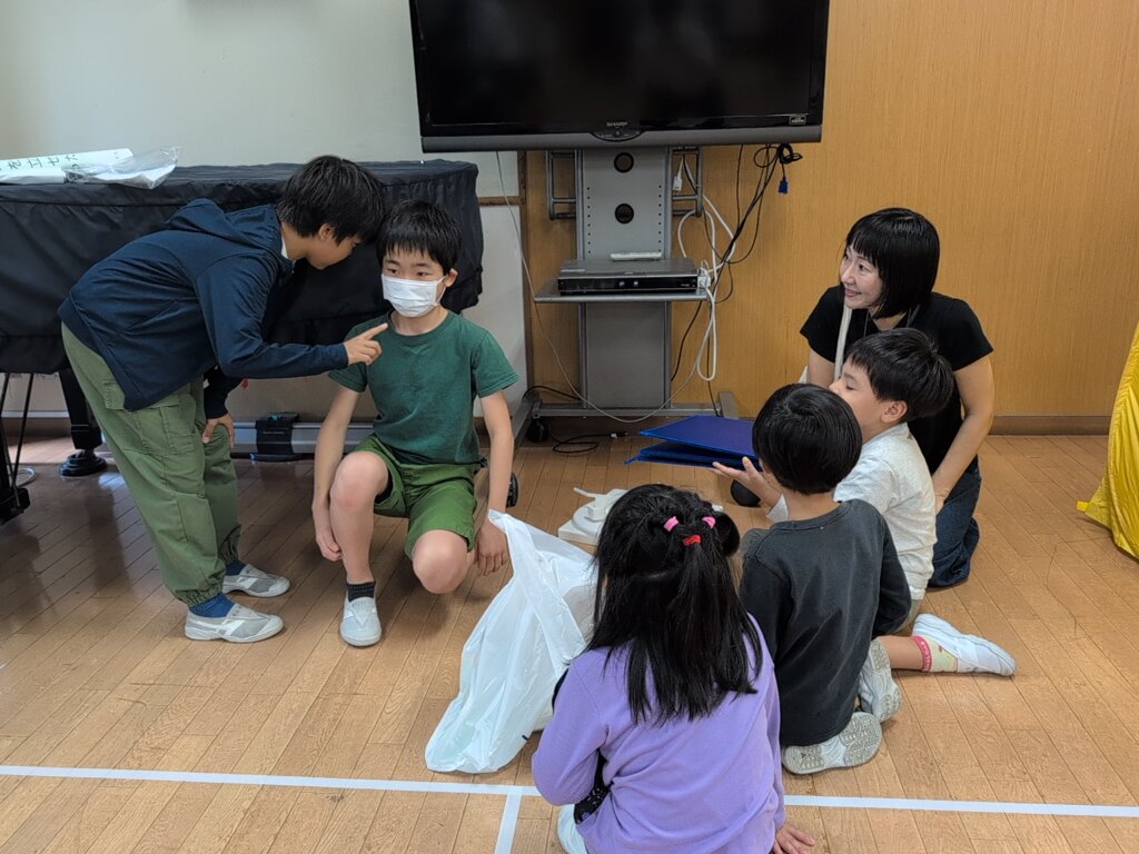 5・6年生が震災救援所の開設者・運営者となり、1〜4年生の子供たちが被災者として、震災救援所体験をします。