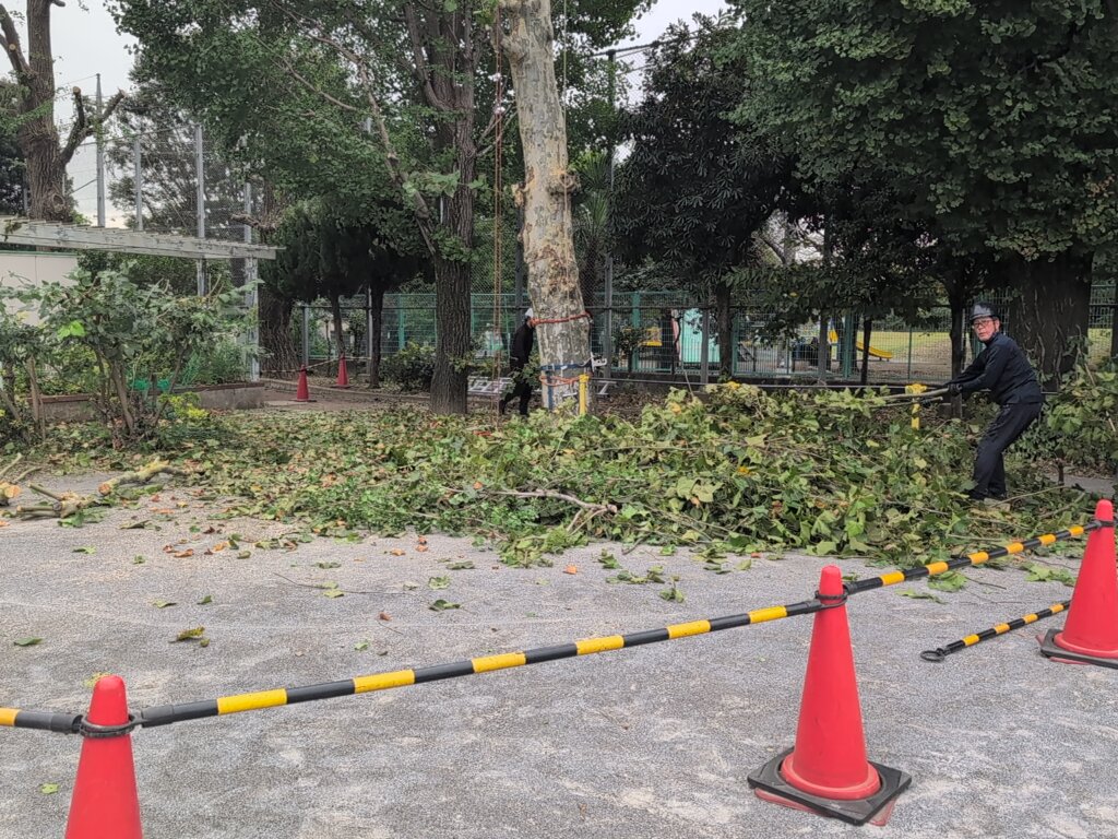枯れているもの、大きくなりすぎているもの、台風時等に倒木や枝が折れたりなどして、児童に危険が及ぶことは避けなければなりません。