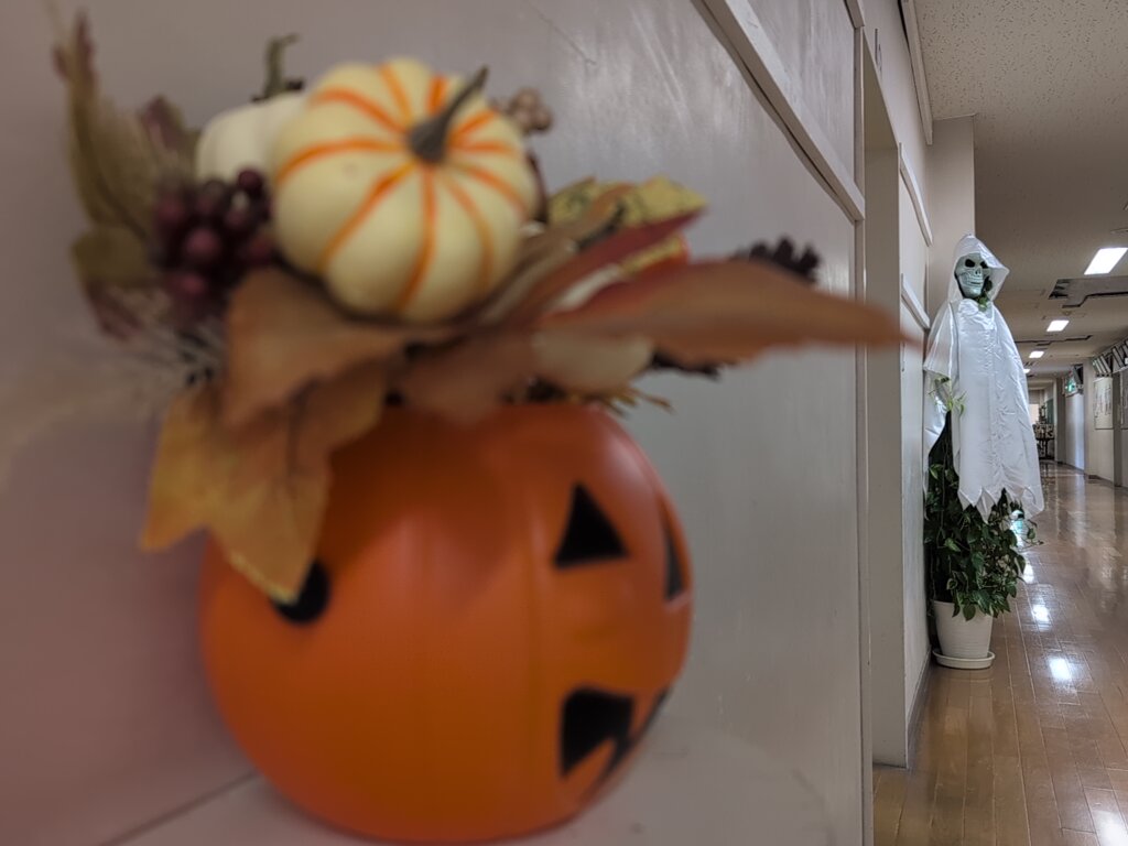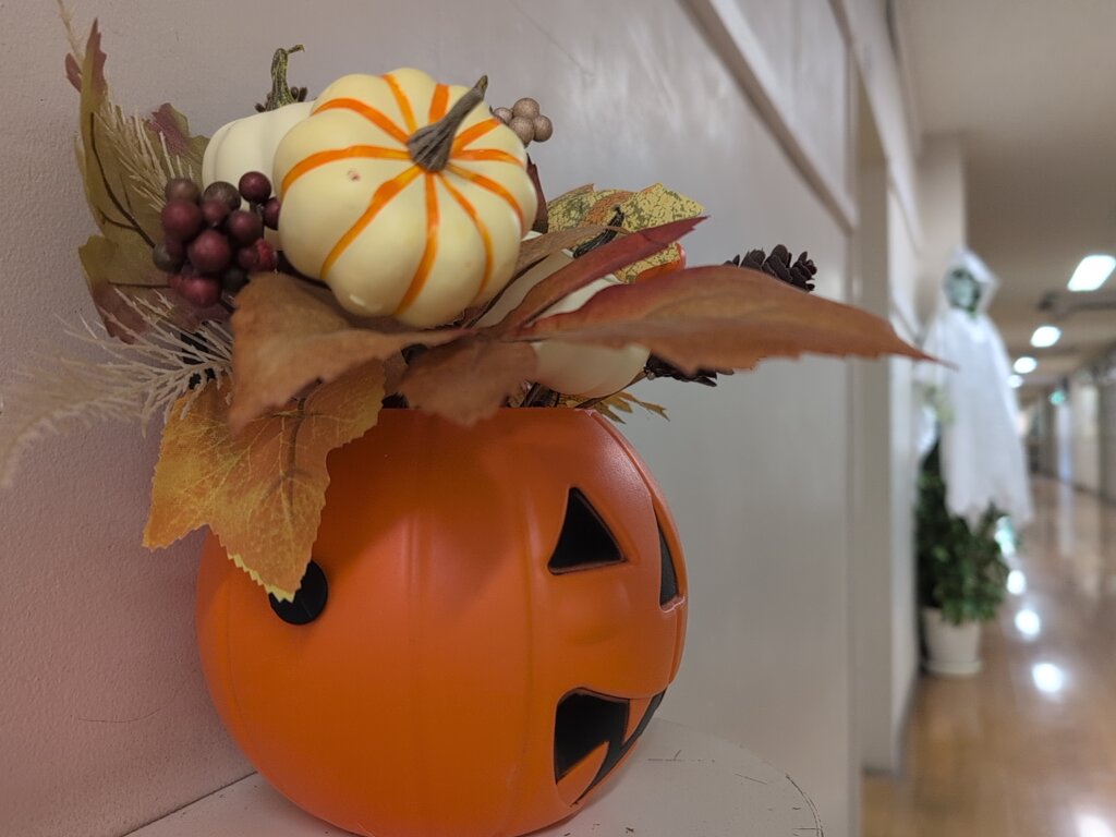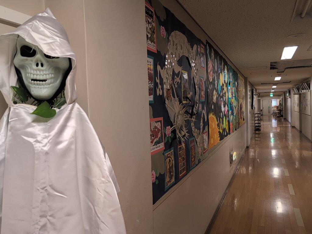 例に漏れず、本校の主事さんたちも毎年気合いが入っており、校舎内はハロウィン仕様になっております。