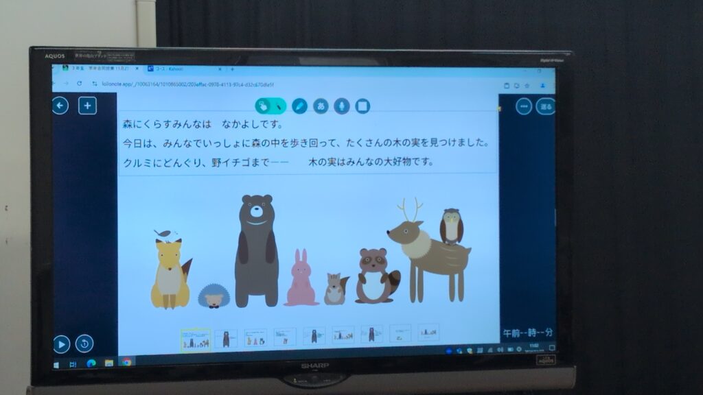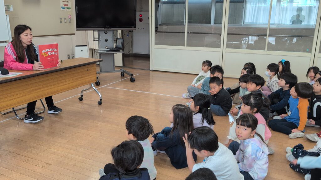 教師が読み聞かせする「こちょこちょモンキー」というこちょこちょ大好きなお猿さんが巻き起こす様々なことを、動物になりきった子供たちが考えます。