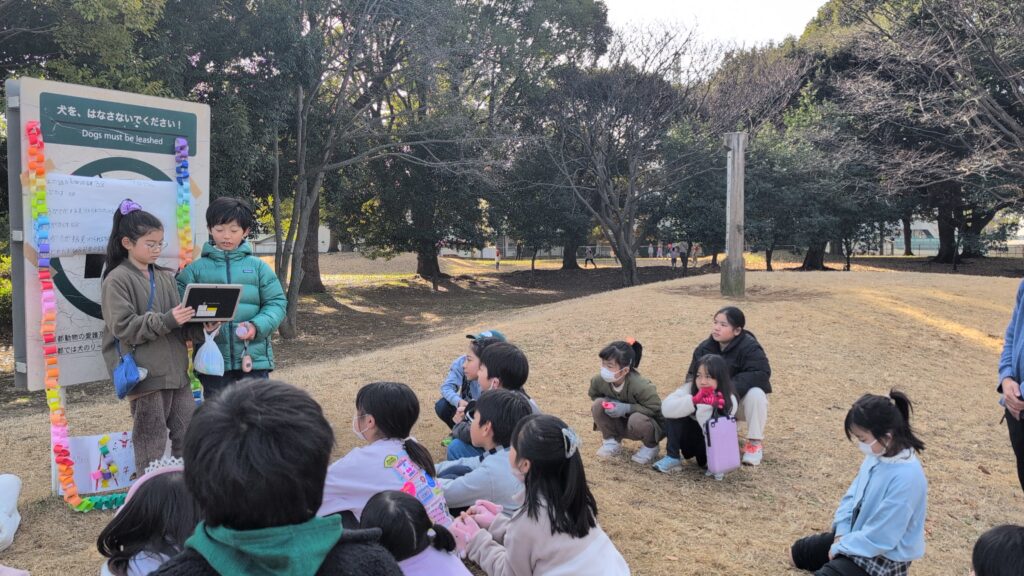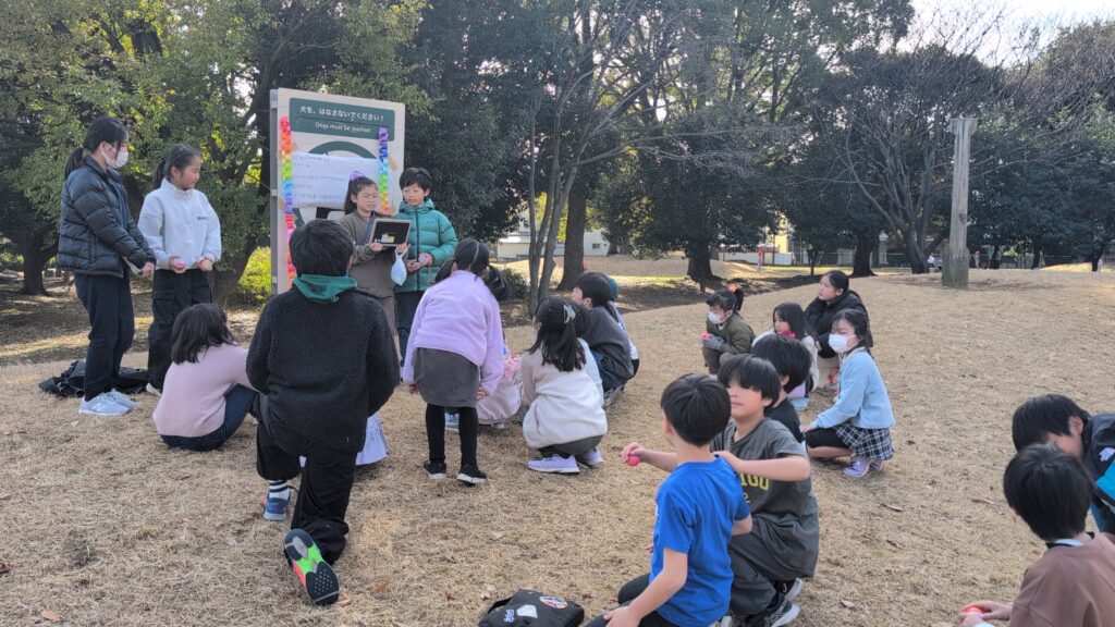 4年生は、隣のわんぱく公園で「宝探し」をしていました。