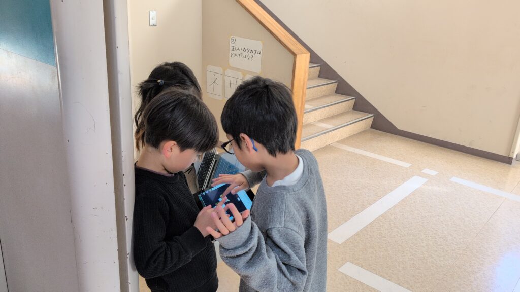 みんな宝探しのように校舎内を探しながら、頭を使い、タブレットの操作に慣れ親しむことまで達成でき、素晴らしい活動をしているなあと感心しました。