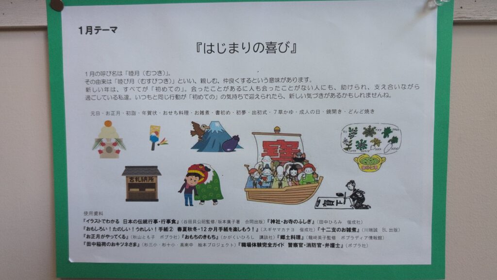 はじまりの喜び 学校全体 コピー 2025.01.082025.06.24 新しい年の始まりですね。 はじまりはなんだかワクワクします。 今年はじめての図書掲示です。 図書ボランティアの皆様、今年もよろしくお願いいたします。