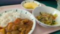 今日は角切りにした肉に下味をつけ、油で揚げ、甘辛いタレに絡ませまし た。