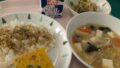 学校全体高野豆腐のそぼろご飯、のっぺい汁、ゆかりキャベツ、牛乳