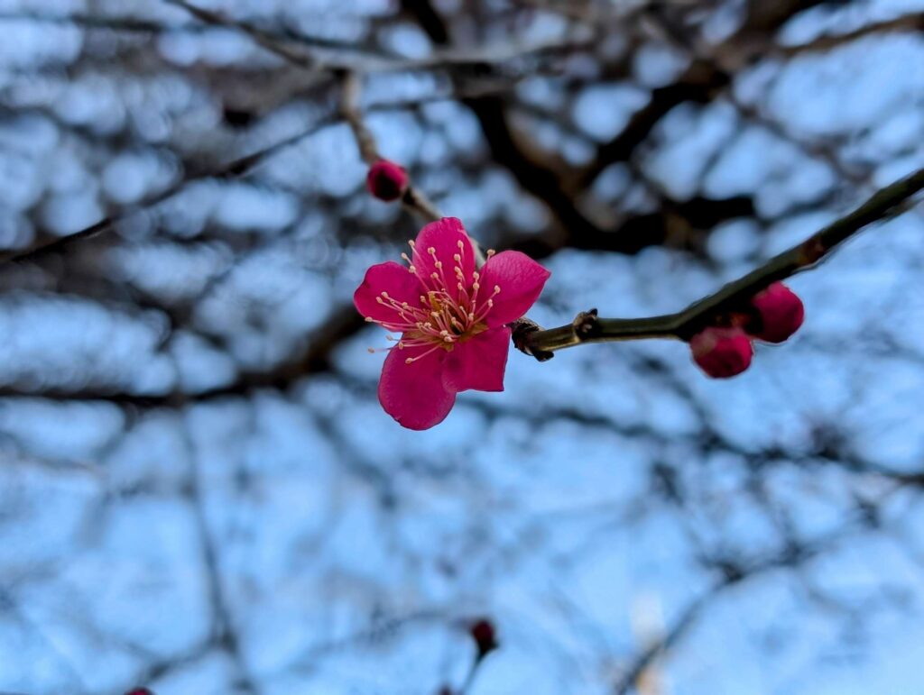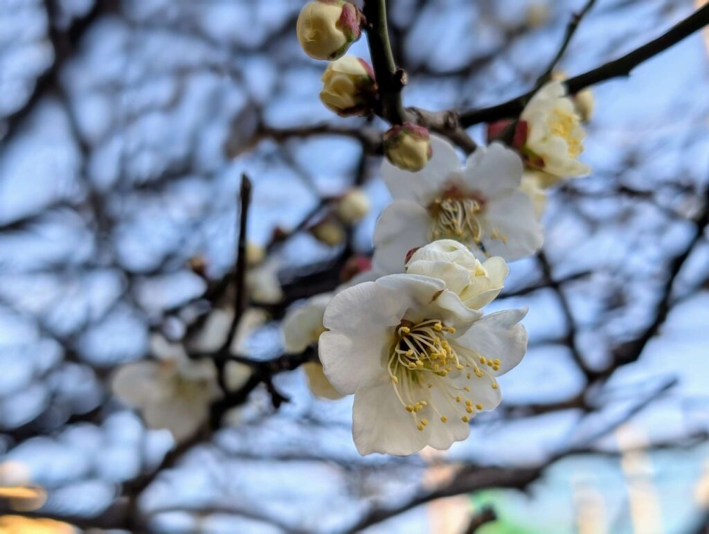 校庭の北側にある梅の木に、いくつかの花が咲いていました。まだ肌寒い日が続いていますが、梅の花は凛とした姿で咲き、そろそろ訪れる春をそっと知らせてくれています。