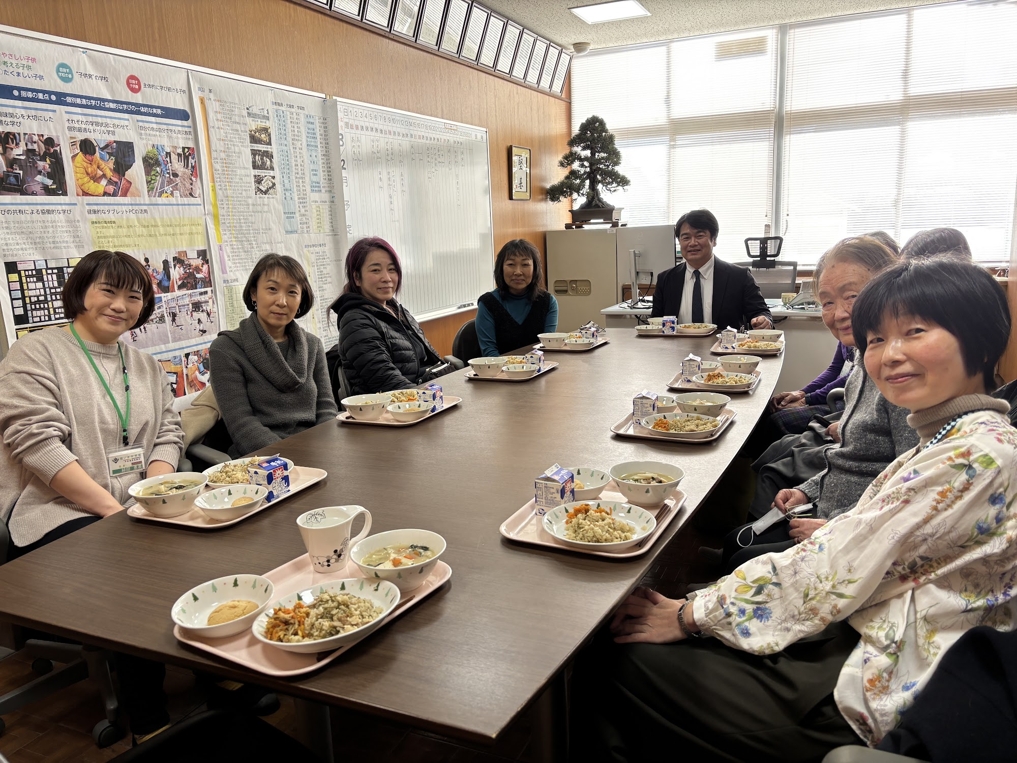 昨日は、一年間お世話になった学校支援本部の皆様、そして図書ボランティアの皆様と一緒に給食をいただきました。いつも温かいご支援をいただき、心より感謝申し上げます。