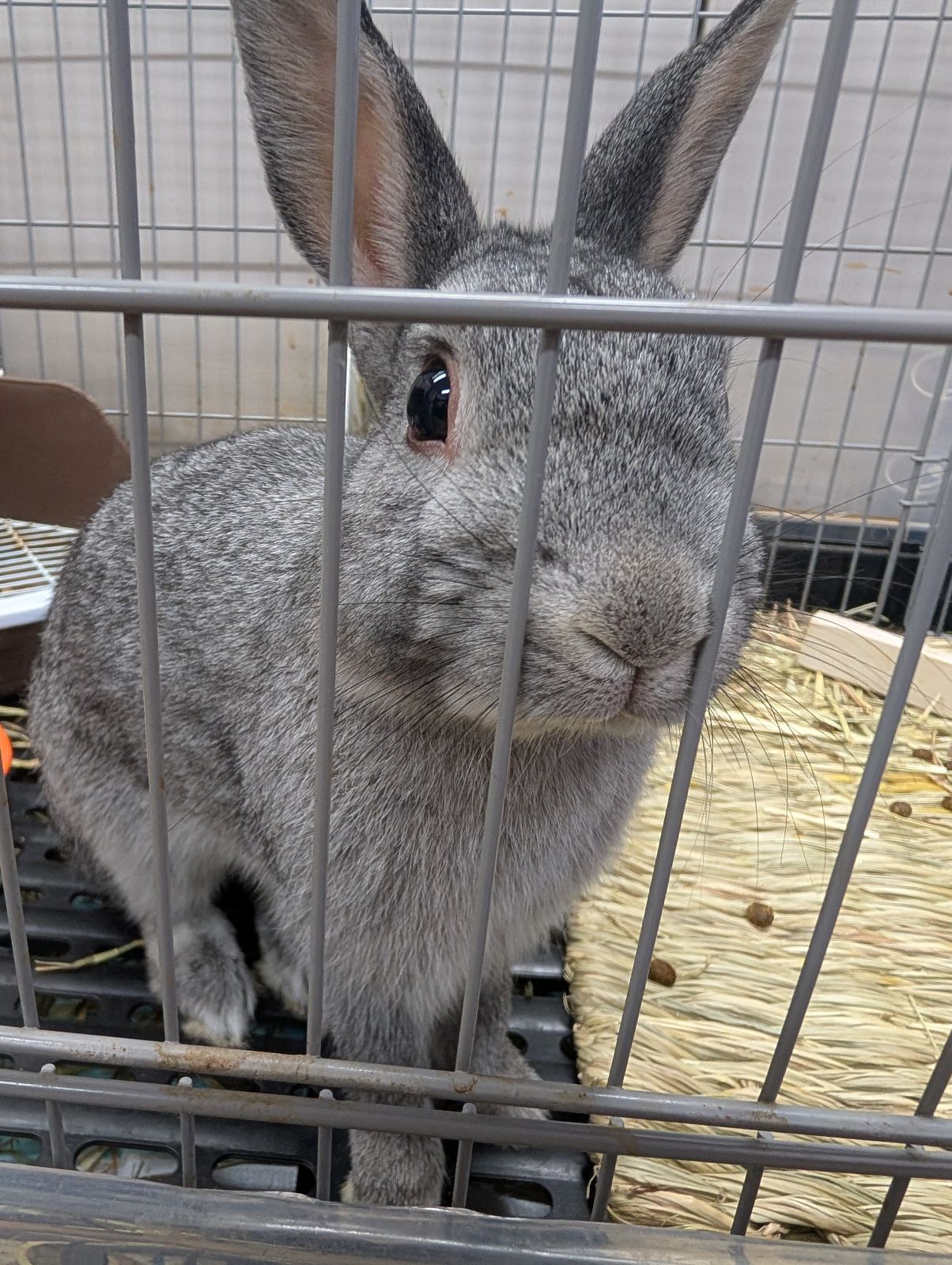 ららくんの チャームポイント は、さらさらの グレーの毛並み と つぶらな瞳。