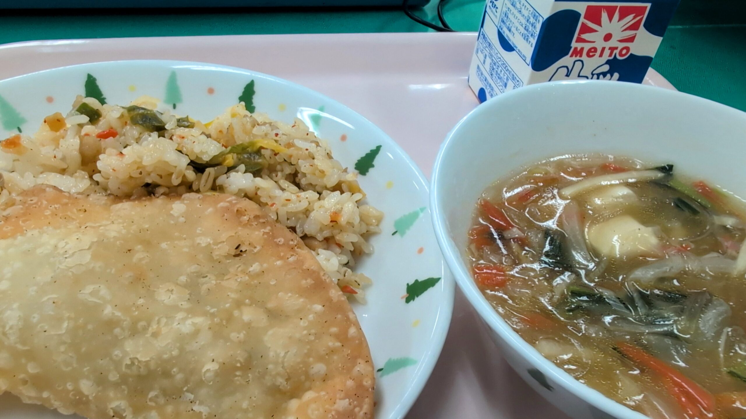 学校給食では、スピーディーに大量調理できること、そして加熱しやすいことが重要な条件となります。その条件を見事に満たしたのが、油で揚げた「ジャンボ餃子」です。