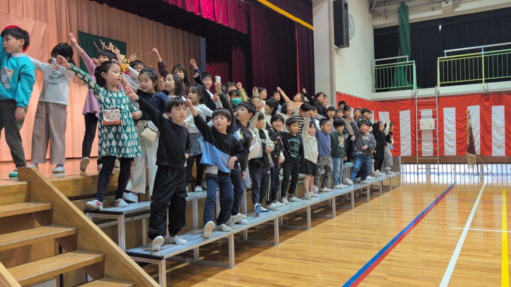 また、式では2年生による歓迎の出し物も行われました。元気いっぱいの歌と温かい言葉で、一年生をやさしく迎える姿に、子どもたちの成長を感じました。