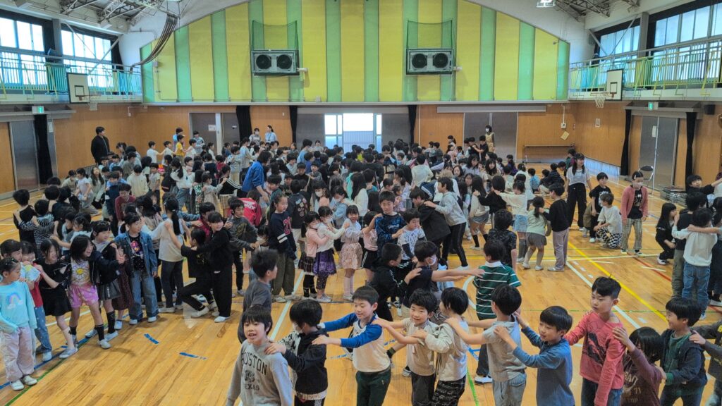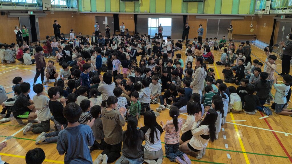 1年生一人一人による自己紹介では、誰一人として戸惑うことなく、元気な声で自分の名前を言うことができました。その後は、全校児童で「じゃんけん列車」を行い、大いに盛り上がりました。