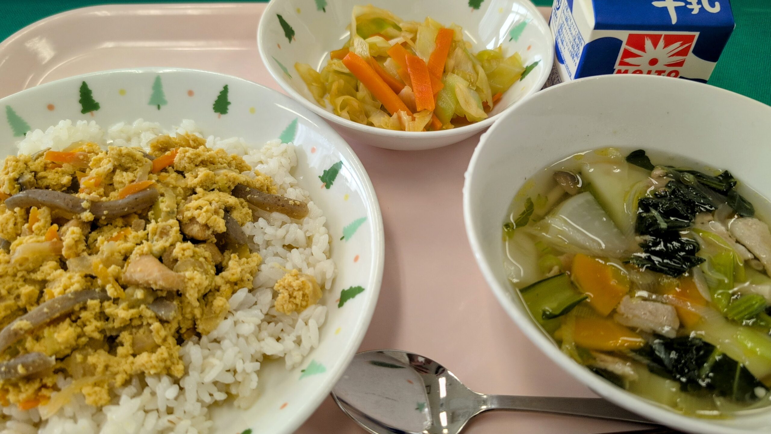 卵と鶏肉のやさしい味わいが、ごはんとよく合い、心も体もほっとする献立でした。