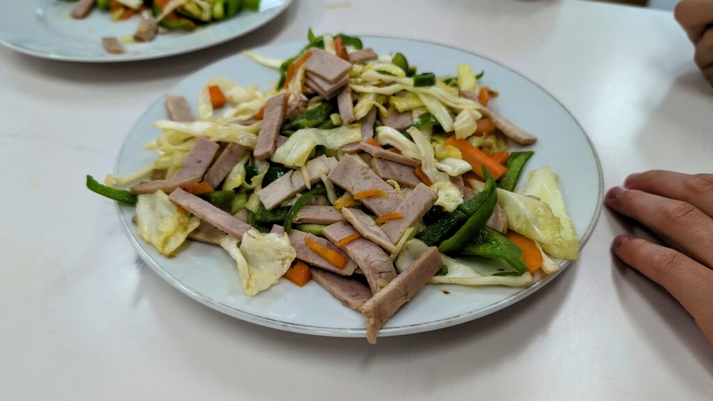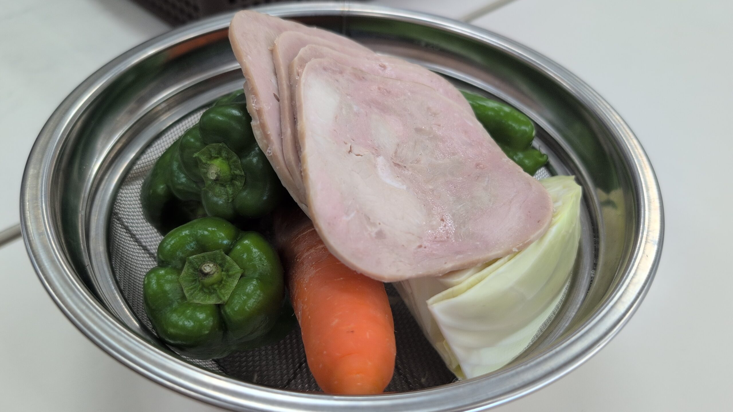 学校全体今日は6年生が家庭科の調理実習で野菜炒めを作っていました。