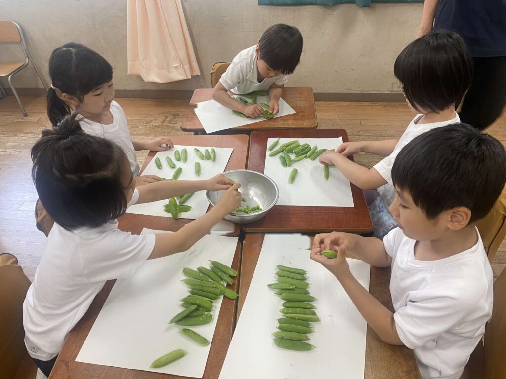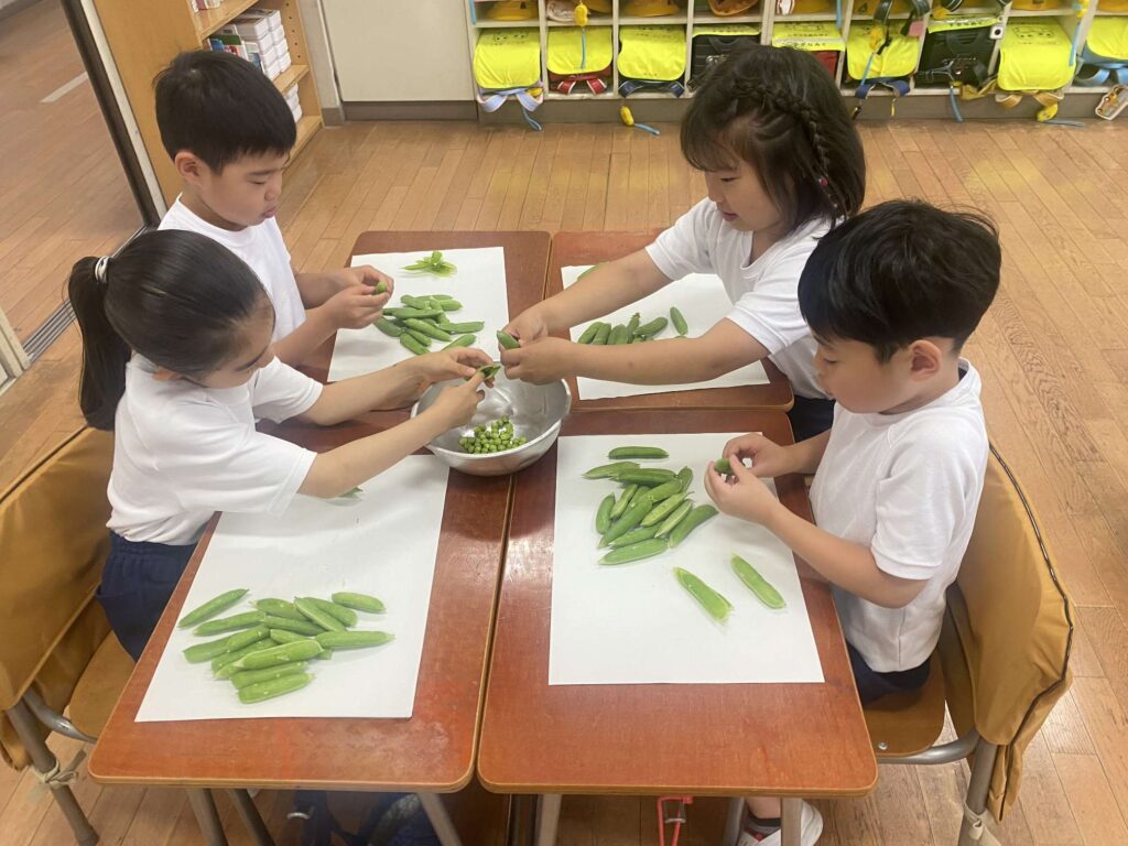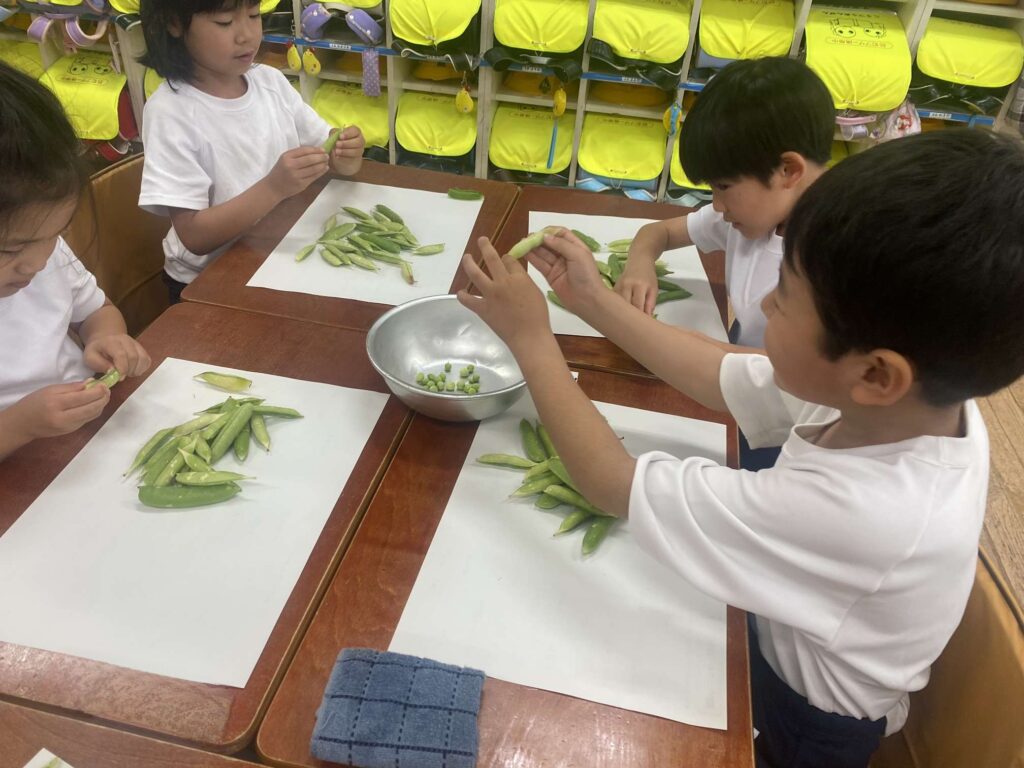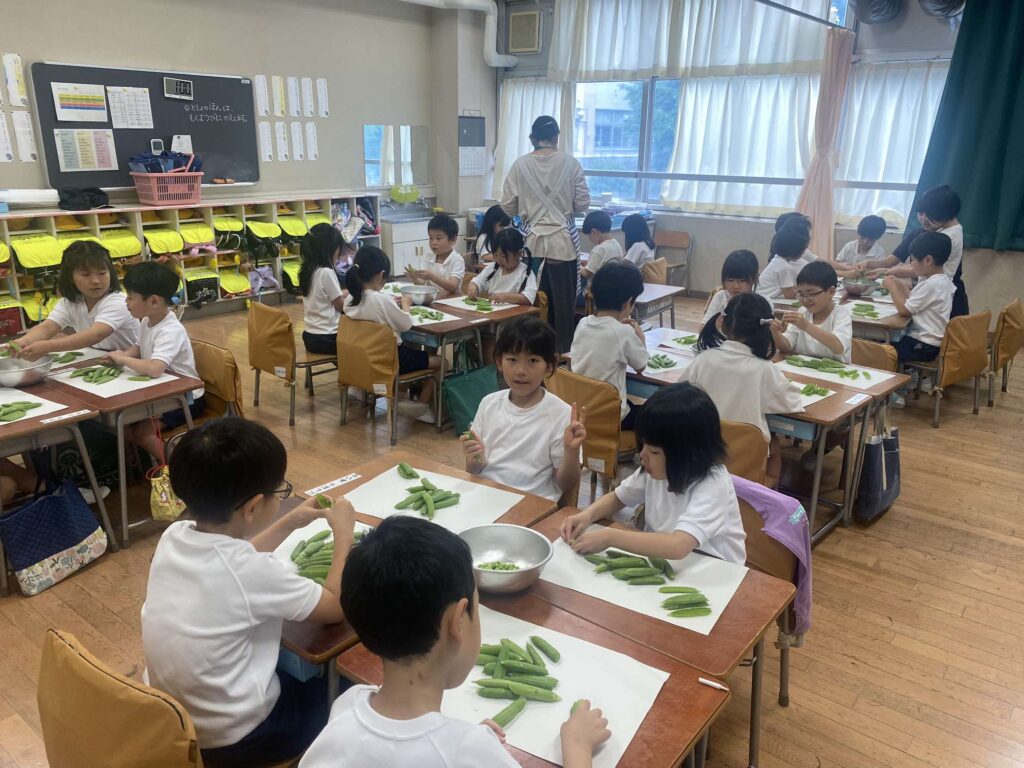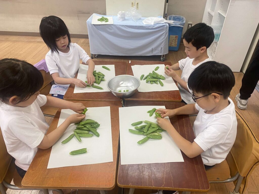 今日のピースごはんには、1年生がさやむきをしてくれた新鮮なグリーンピースが使われています。