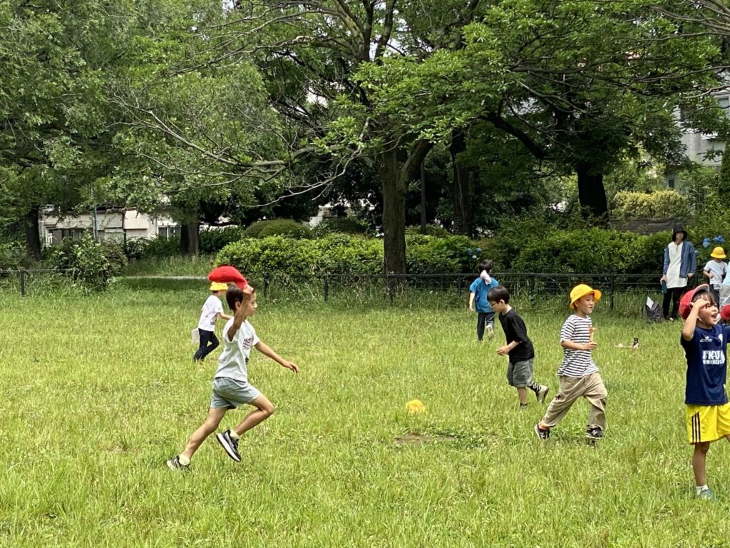 今日は、暑くもなく寒くもなく、まさに遠足日和。1・2年生は近くの都立和田堀公園へ出かけ、自然の中でたっぷりと体を動かし、思いっきり遊ぶことができました。