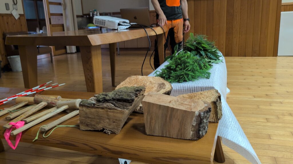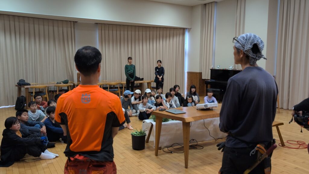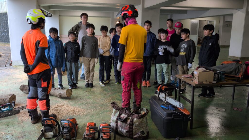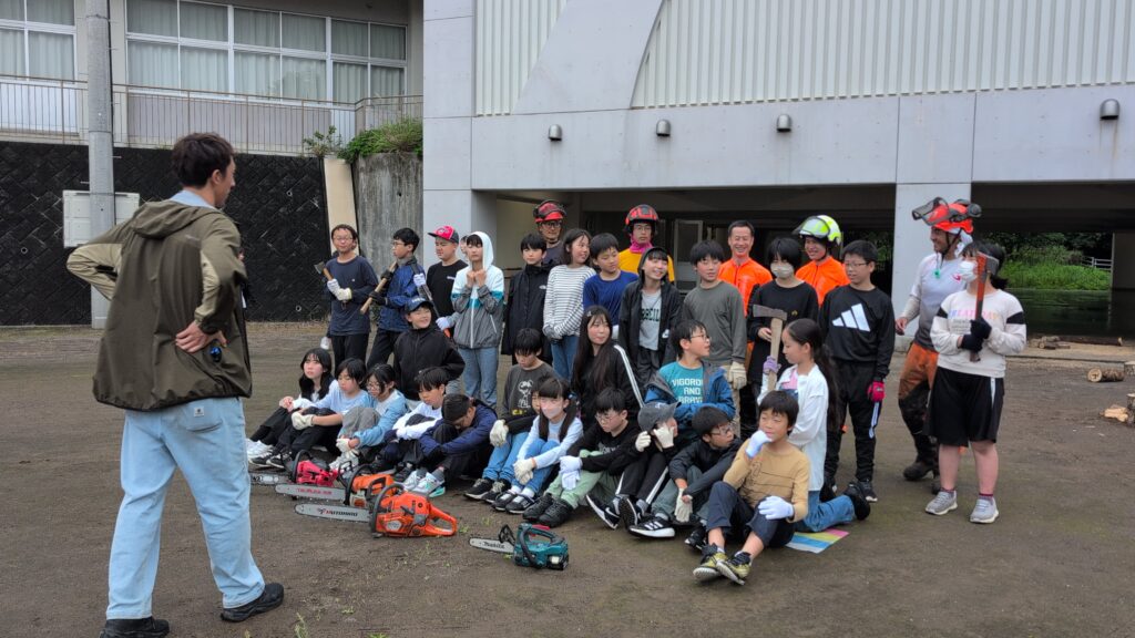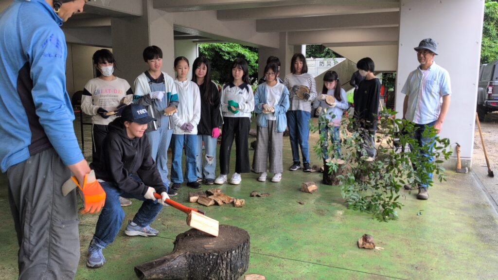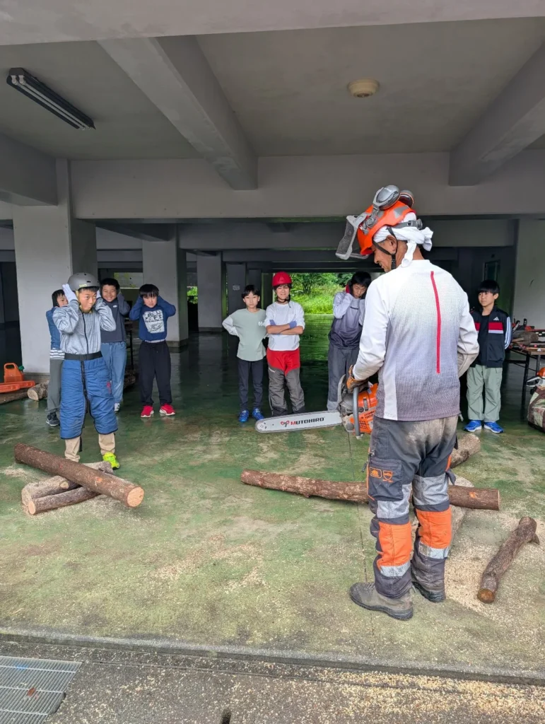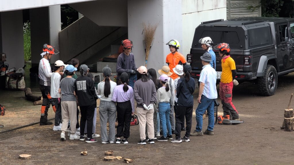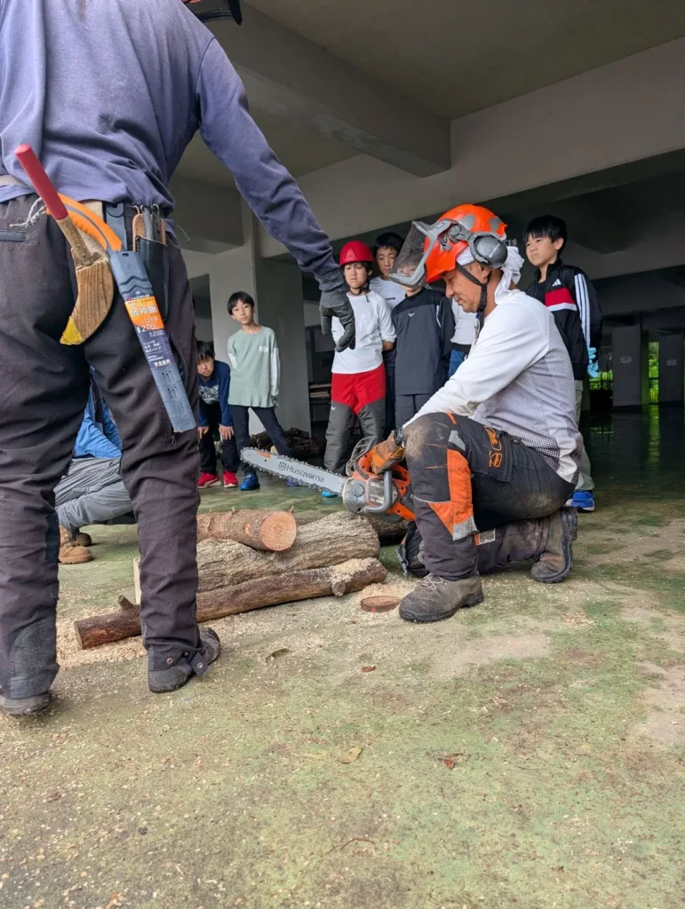 樹木医の方のお話を聞いて、実際にチェーンソー体験や薪割り体験をさせていただきました。