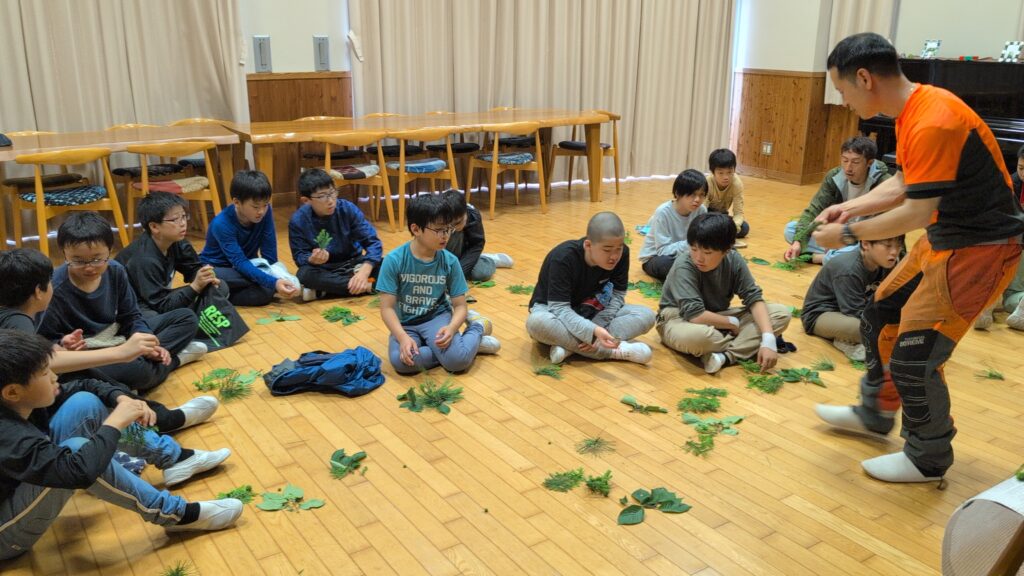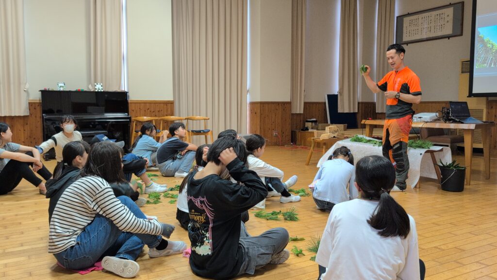 女子すごいなあと思って、樹木医の話を聞いている男子の方に行くと、目をキラキラ輝かせ一生懸命質問している男子たち。女子は、樹木医のお話のときはほとんど静かにしていたのに、男子は、使っている道具のことなどにとっても興味があるらしく、とても意欲的に質問していました。