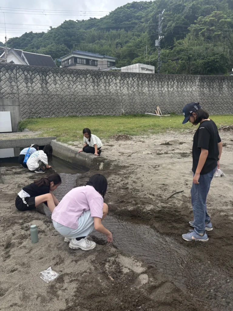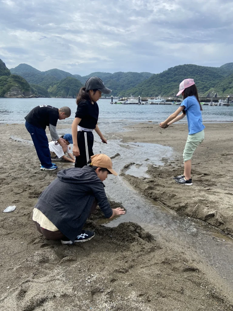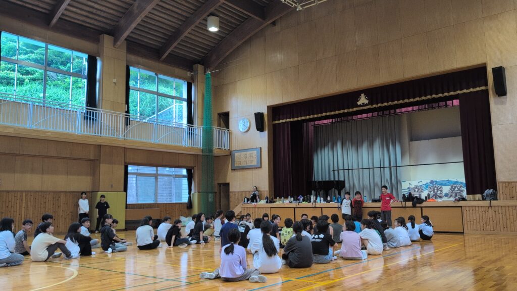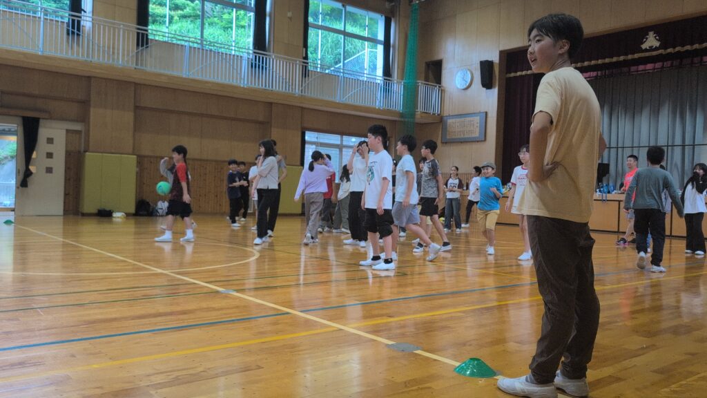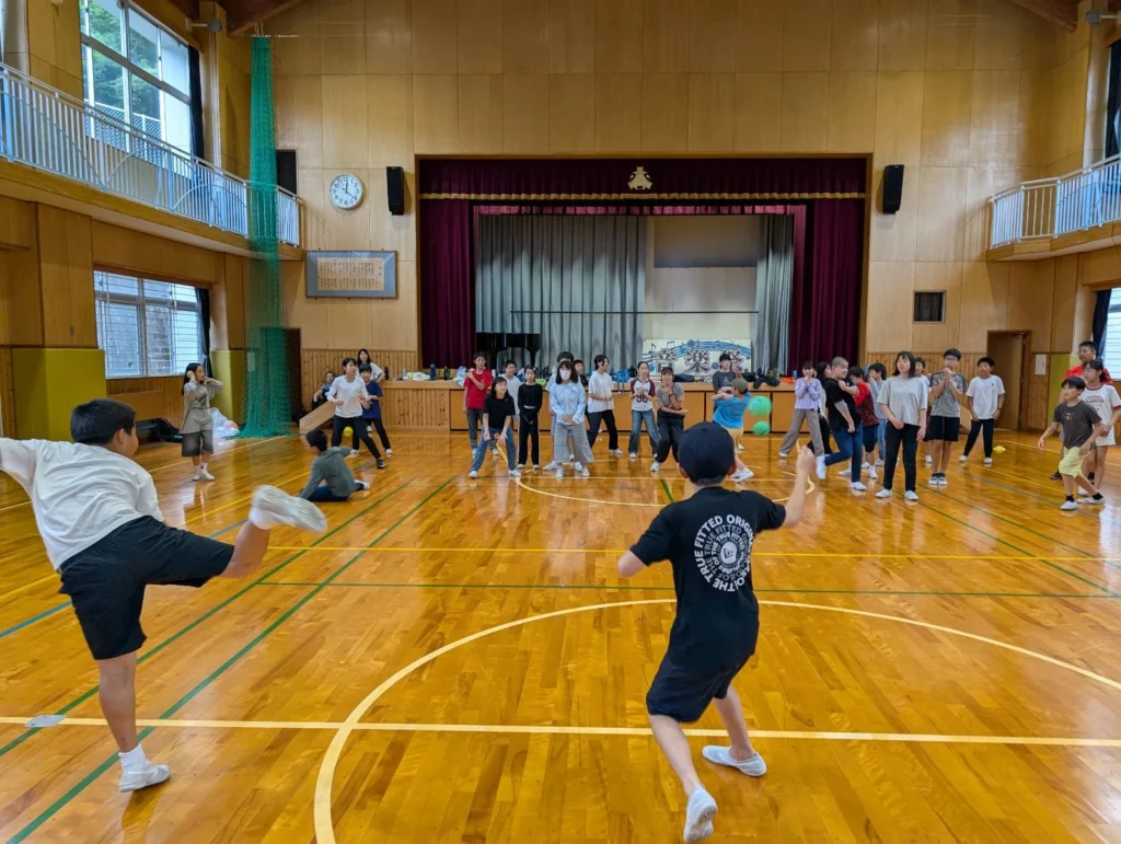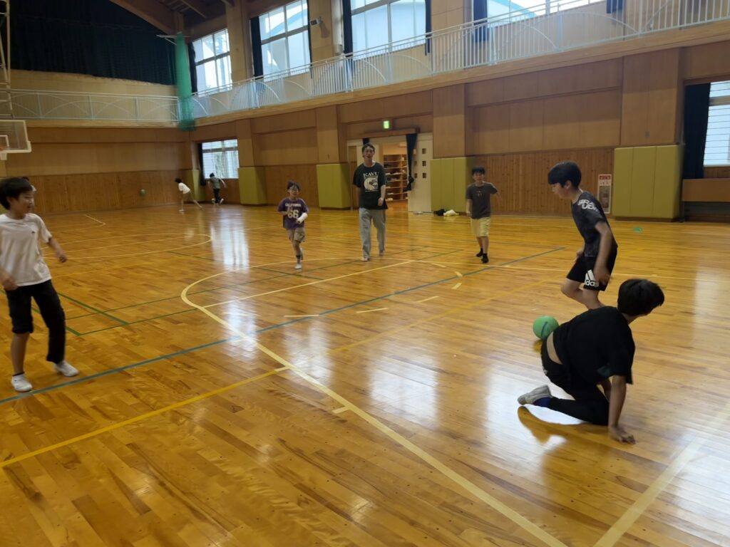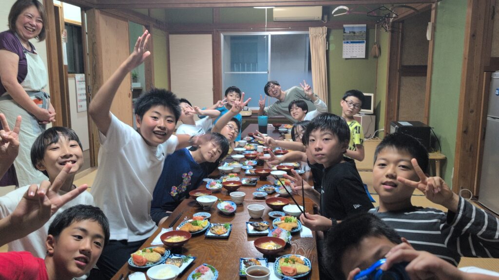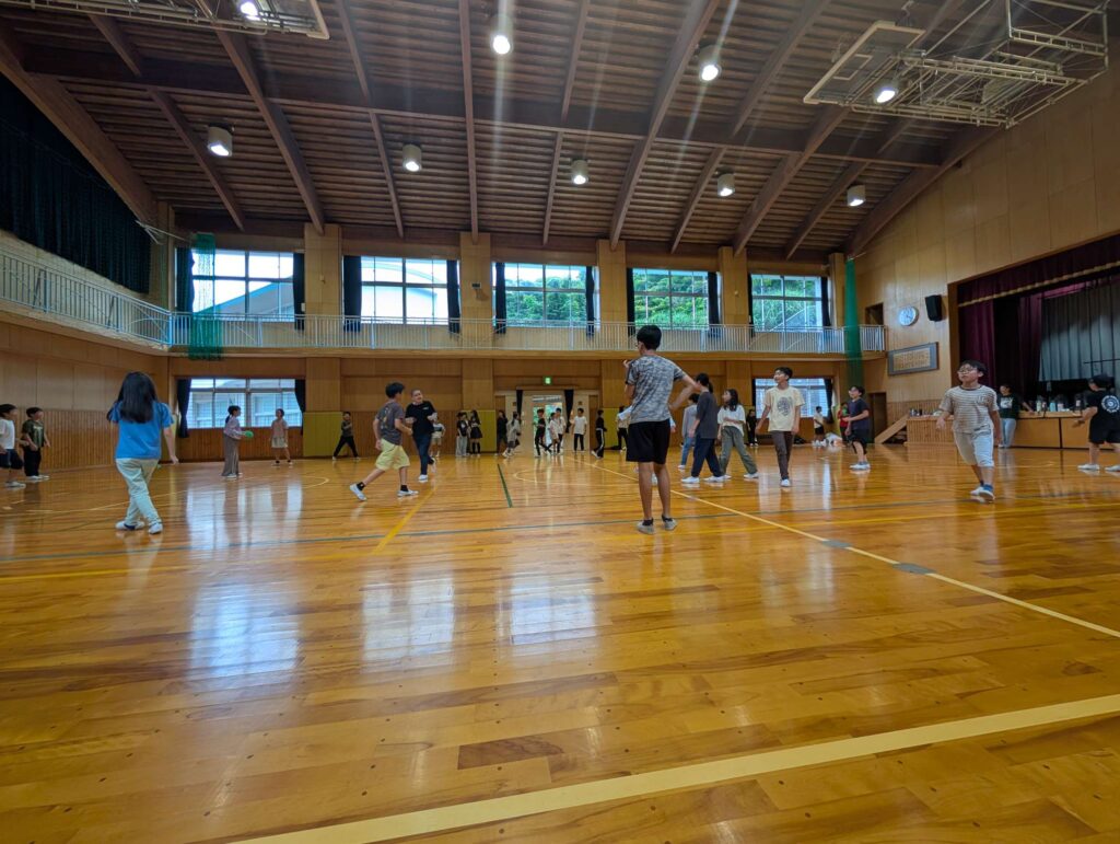 全員での体育館レクを終え、夕飯までの時間をそれぞれが過ごしています。廃校の校舎で学校かくれんぼ鬼をやっているグループ、宿で遊んでいるグループ、さらに町探検に出かけているグループなど、それぞれです。
