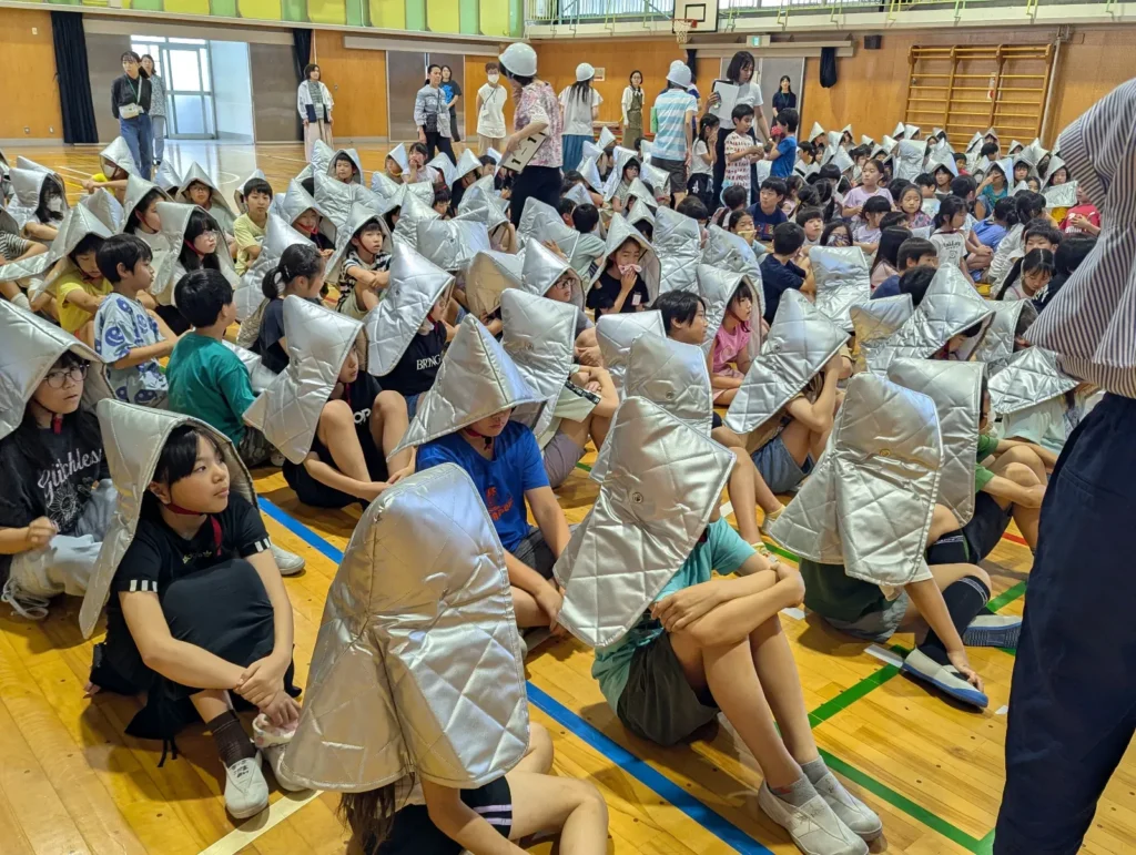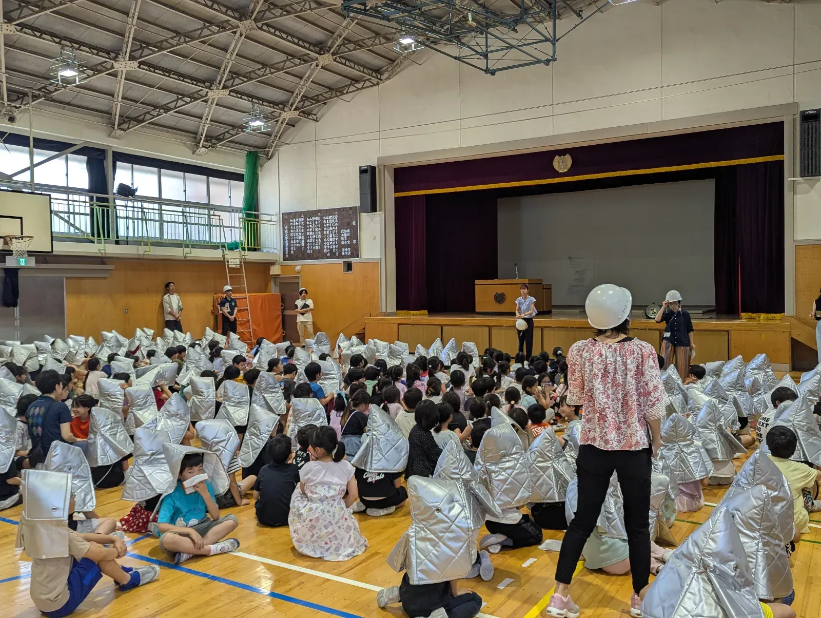 当初は校庭への避難を予定していましたが、熱中症の危険があるほどの気温であったため、急遽、避難場所を体育館に変更しました。