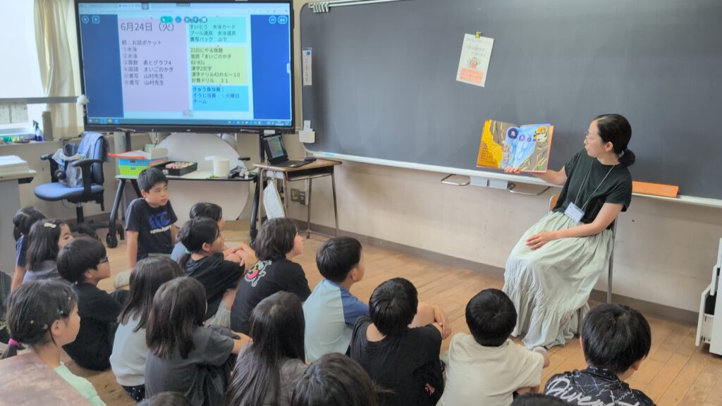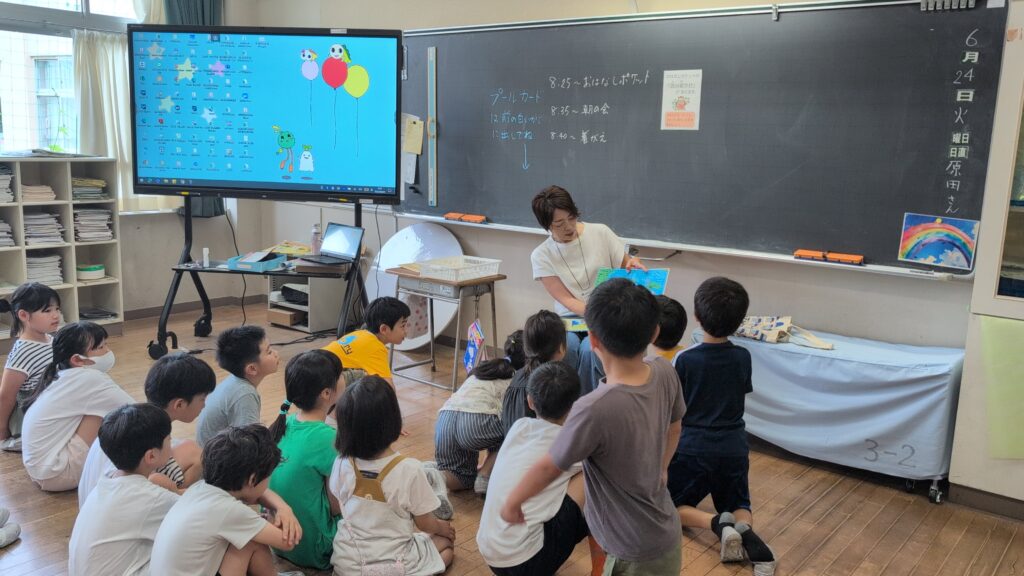 どの教室でも、子どもたちは絵本の世界にぐっと引き込まれ、物語の展開に目を輝かせていました。読み手の方の声の抑揚や間の取り方、登場人物に合わせた語り口に、子どもたちは自然と集中し、時に笑顔を見せたり、真剣な表情になったりと、心が動いている様子が伝わってきました。