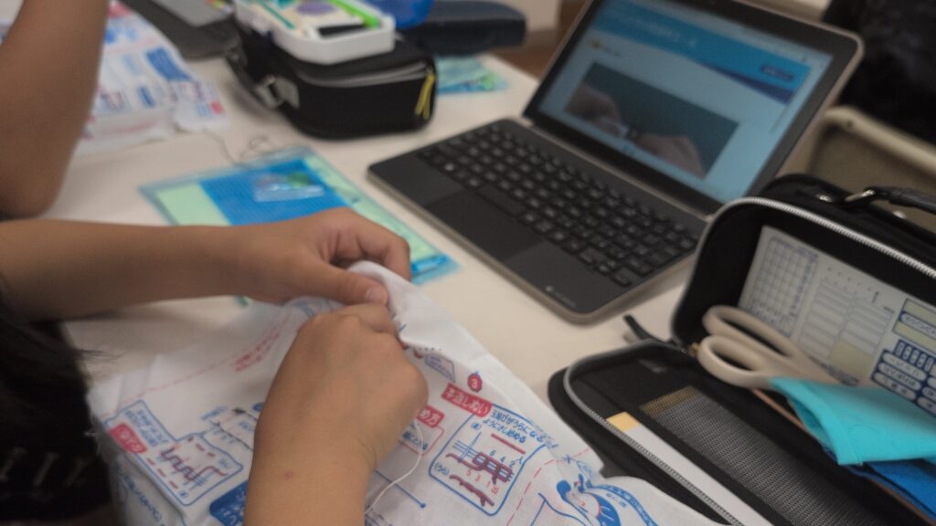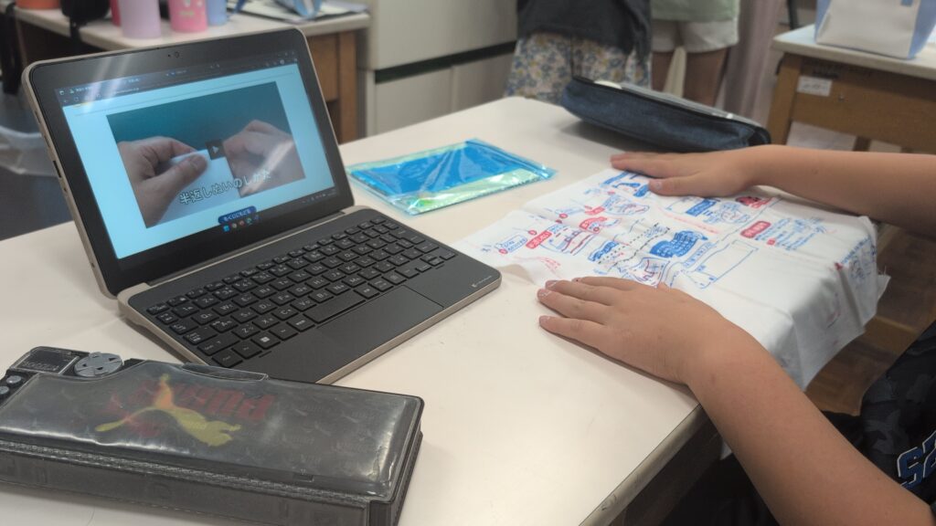 ソーイングも同じで、昔のように「一度きりの先生のお手本を必死で覚える」のではなく、タブレットで手元を写した動画を何度でも見返すことができ、子どもたちは自分なりにコツをつかんでいける環境になっています。