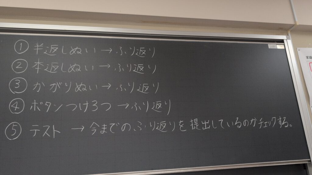 「半返しぬい」「本返しぬい」「かがりぬい」などの縫い方や、ボタン付けなど、ひと針ひと針、丁寧にチャレンジする姿が見られました。