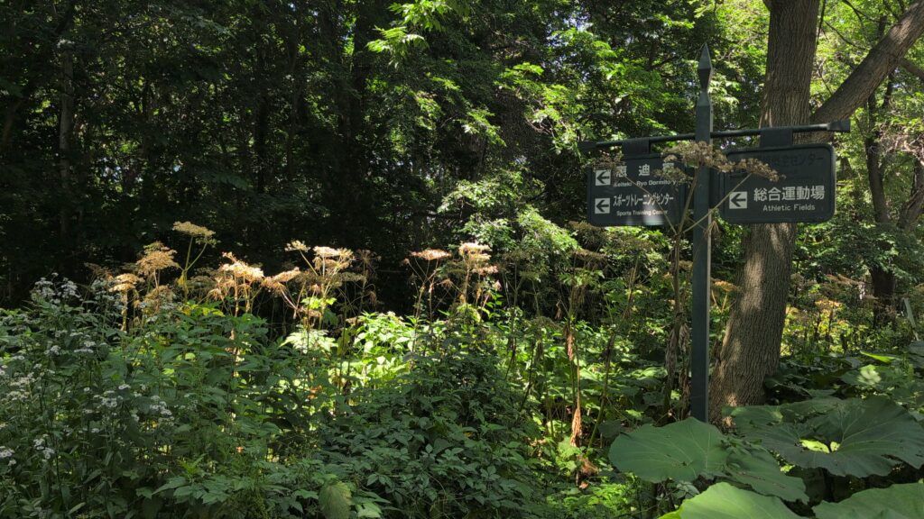 北海道大学の中を歩いて、「あれかな?これかな?」と探していたら、ある草むらに、似たような植物の群れを見つけました。もっと見てみたいと思ってキョロキョロしていたら、警備員さんが声をかけてきました。