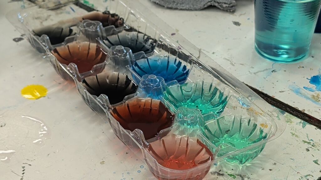 2年生の図工の時間。子供たちはカラフルな色水づくりに挑戦していました。