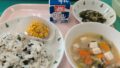 学校全体今日の給食は、きんぴらごはん、めひかりのからあげ、けんちん汁、カリカリ油あげのサラダ、牛乳でした。