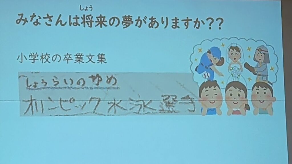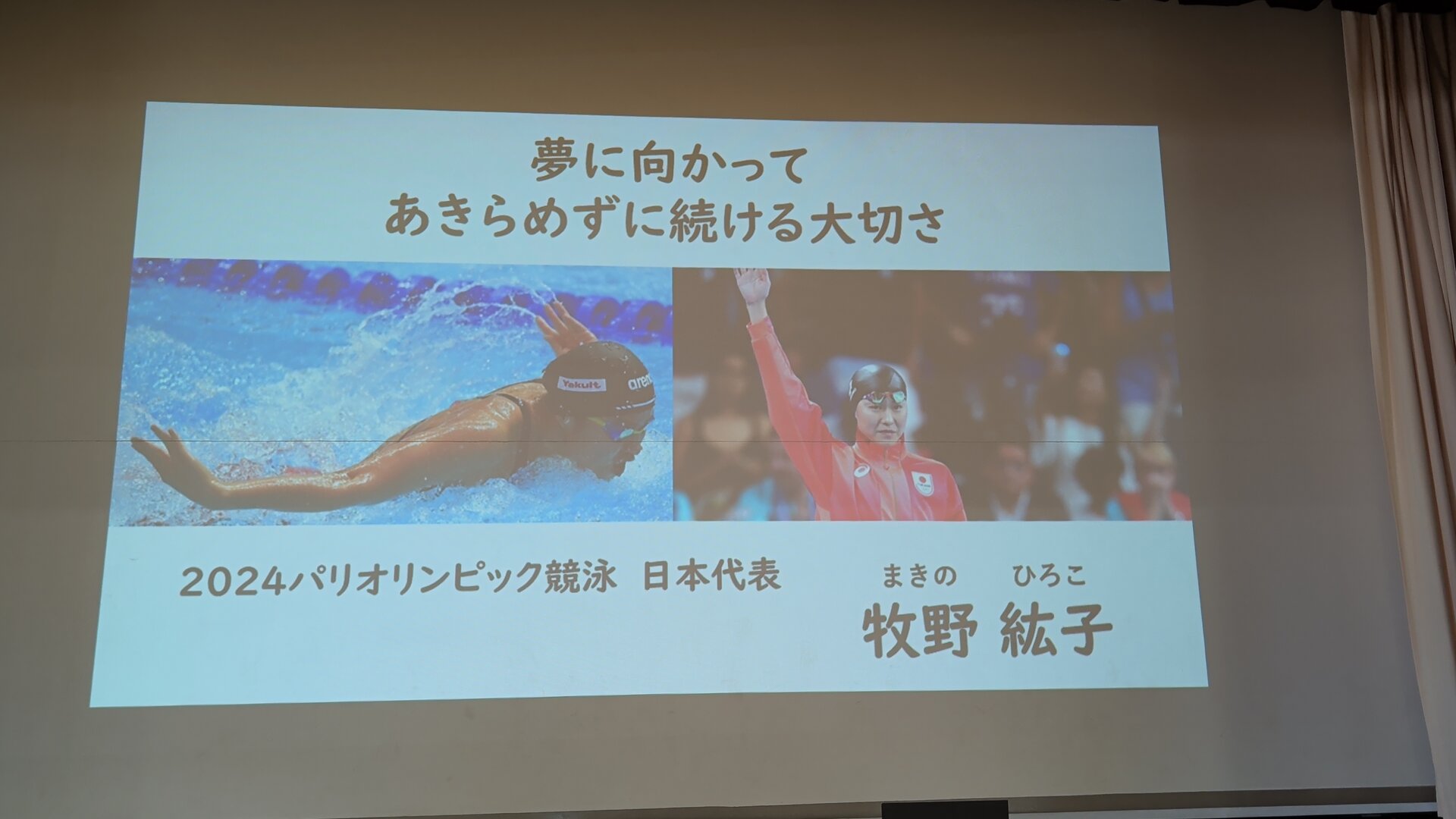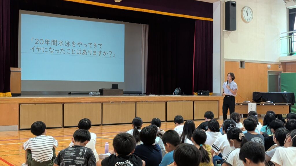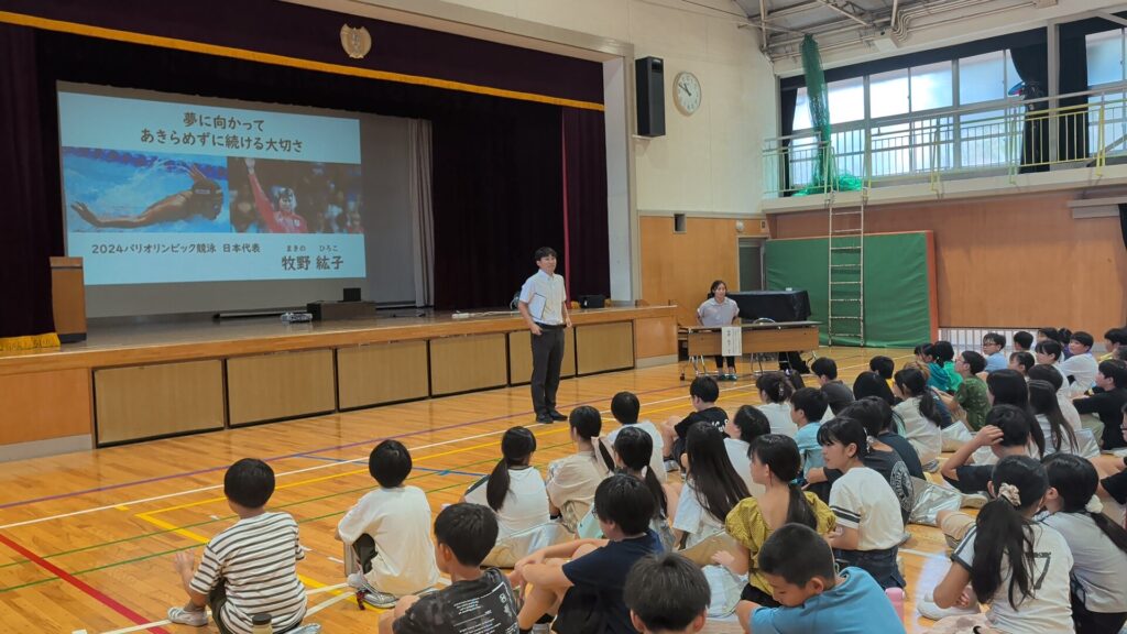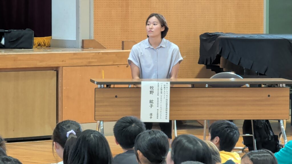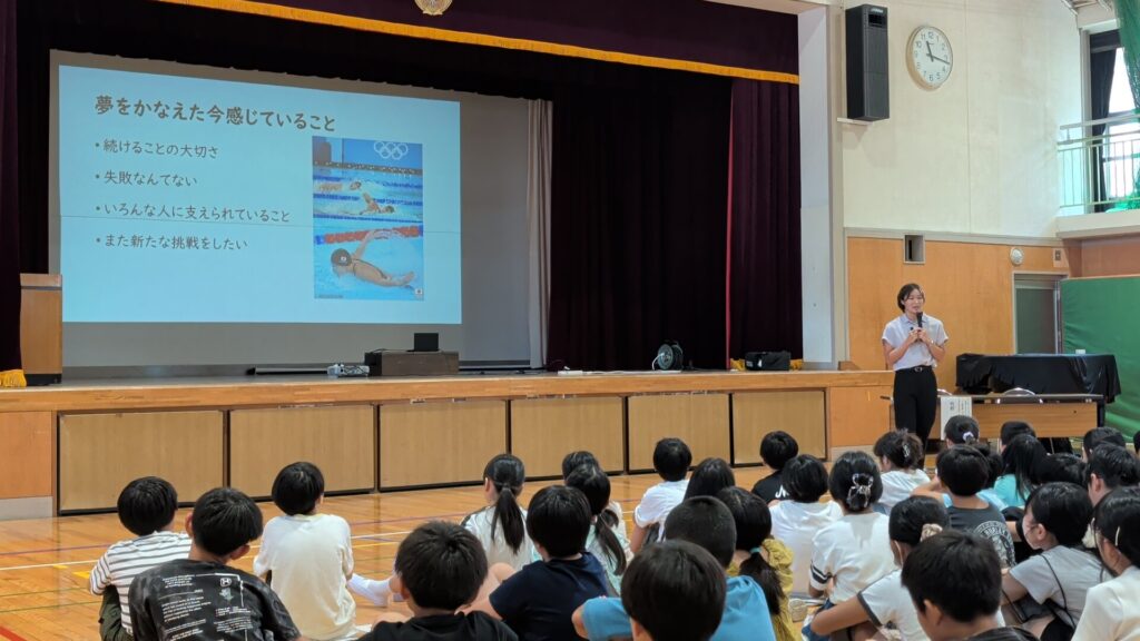 5・6年生は、パリ五輪・競泳バタフライ日本代表の牧野紘子選手からお話をうかがいました。