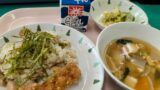 今日の献立は、秋のかおりごはん、いかのかりんあげ、のっぺい汁、なし、牛乳でした。
