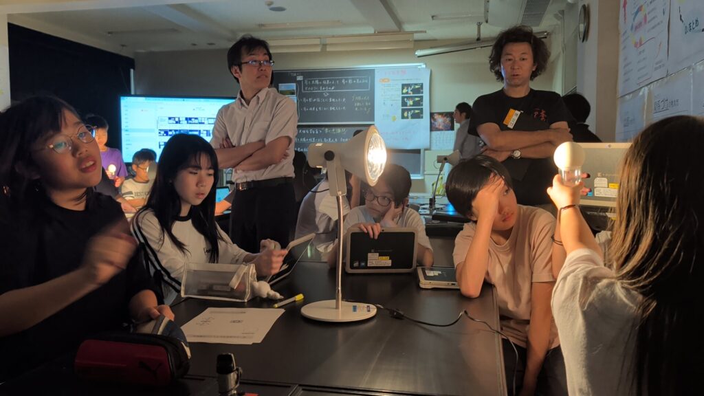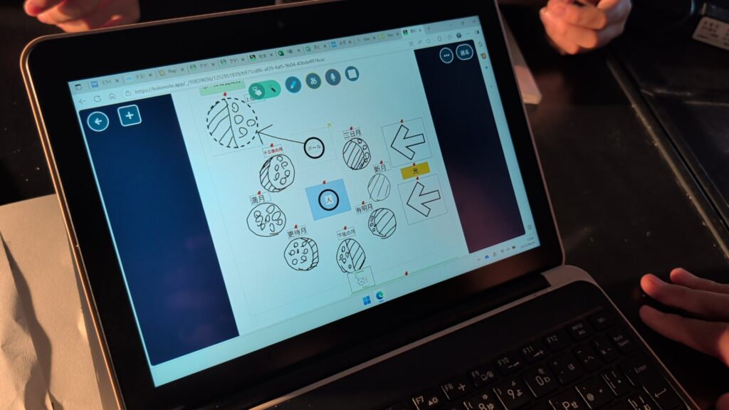 子どもたちはタブレットで記録を取りながら、「なぜそう見えるのか?」と友達と意見を交わしていました。
