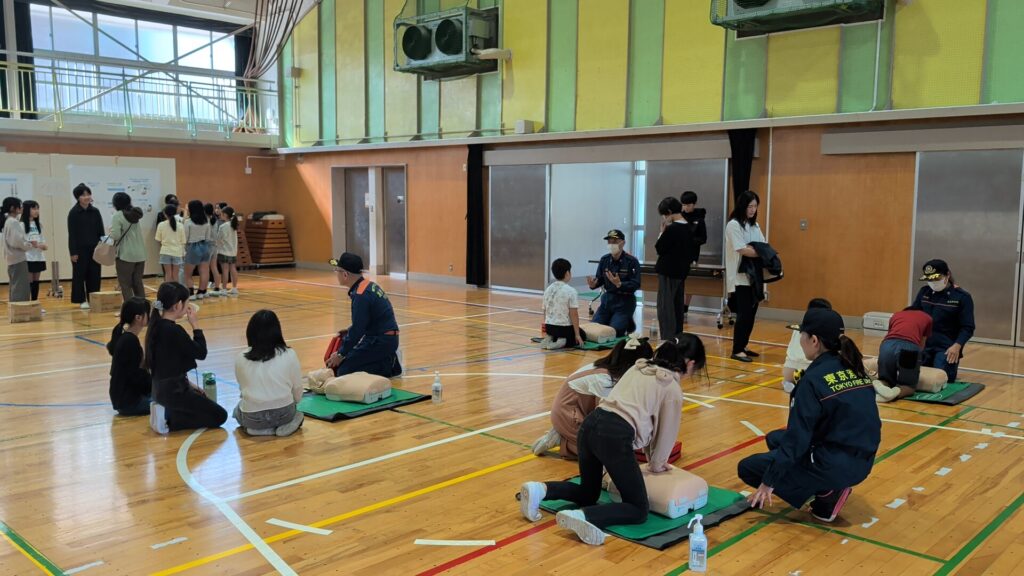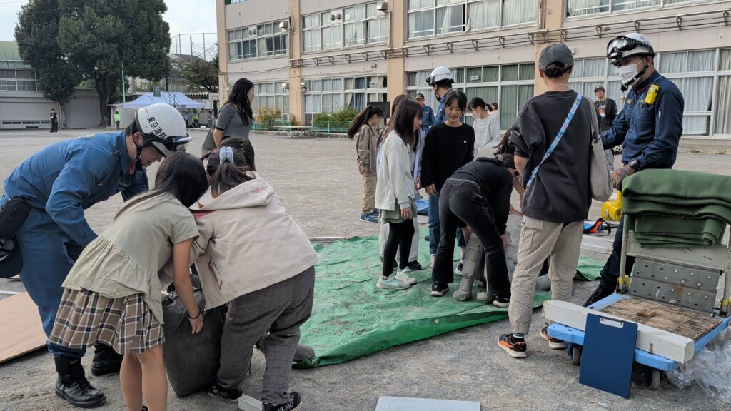 区の防災課の方々、消防署の皆さん、地域の方々のご協力をいただきながら、避難所運営や応急対応について実際に体験し、知識を深めてきました。