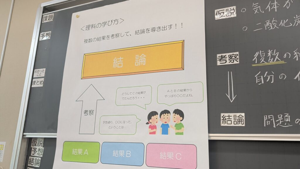 子どもたちは、実験を通して自分の考えを確かめながら、友達の意見にも耳を傾け、意欲的に学びを深めていました。