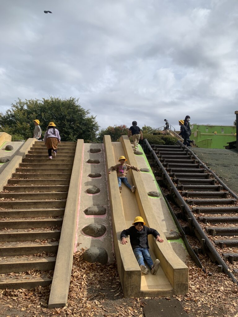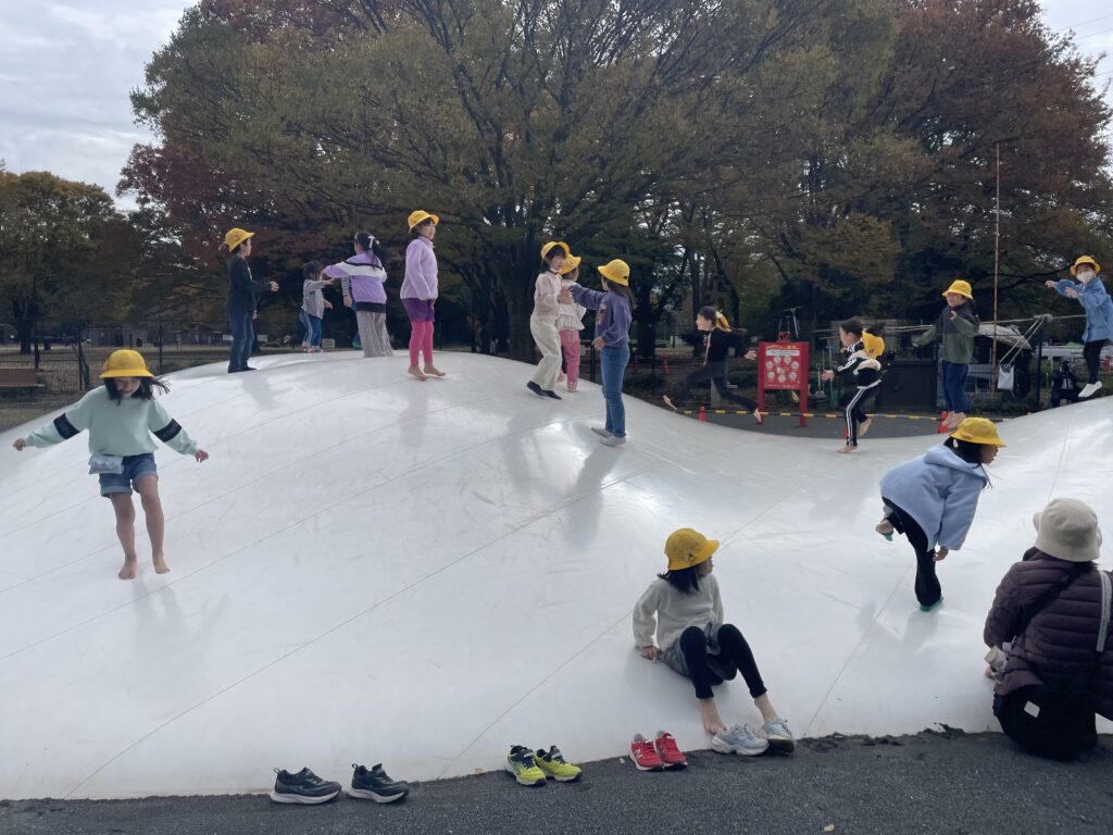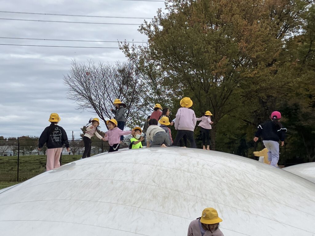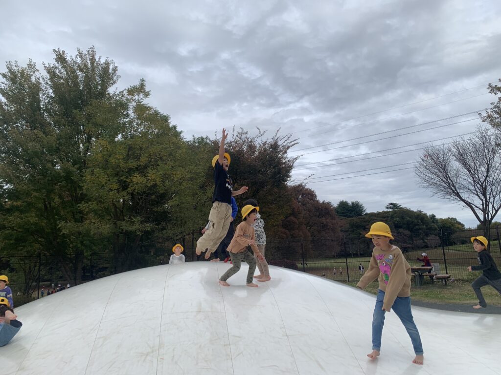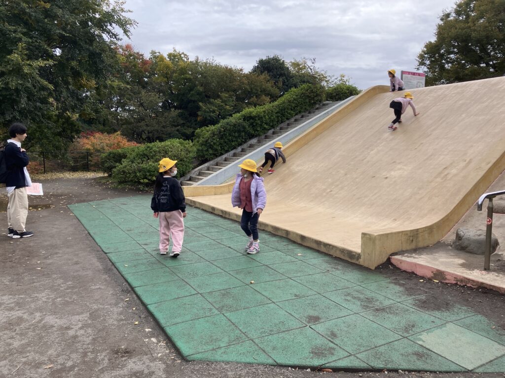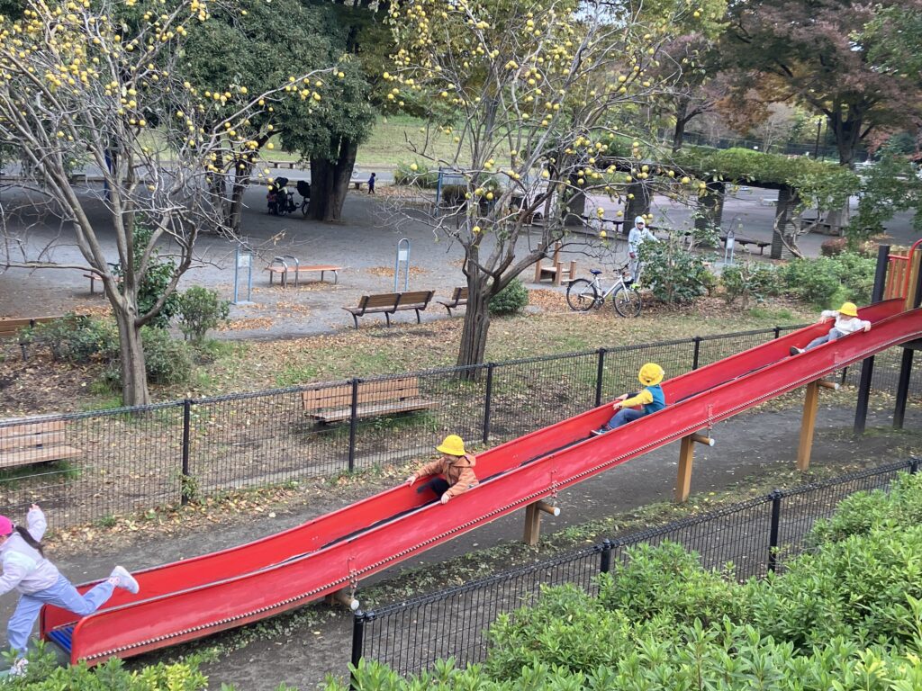 紅葉が始まった木々の美しさに「きれいだねー」と声をあげていたのも束の間、広い公園の中で思いきり体を動かして遊びました。