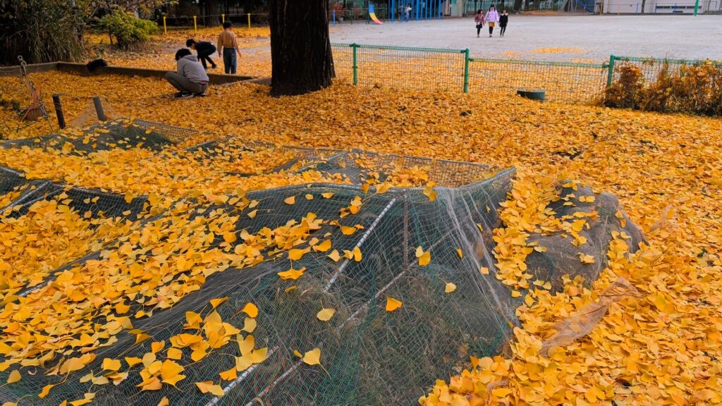 イチョウが作るこの一瞬の景色は、今だけの特別な贈り物ですね。