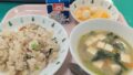 田舎うどん、野菜のごまだれあえ、さつまいもパイ、牛乳