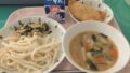今日は、鹿児島県の郷土料理「薩摩汁」が登場しました。写真のとおり、具だくさんでやさしい色合いの汁物には、鶏肉のほか、ごぼう、こんにゃく、にんじん、大根、さつまいも、豆腐、長ねぎが入り、旨味がしっかりと溶け込んでいました。寒い季節にぴったりの温かい一杯です。