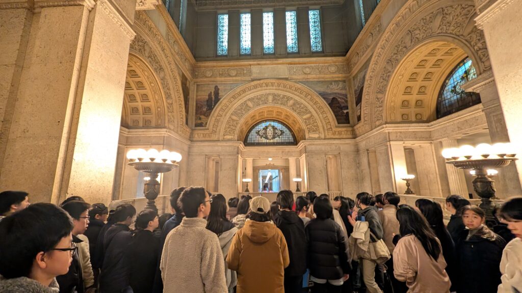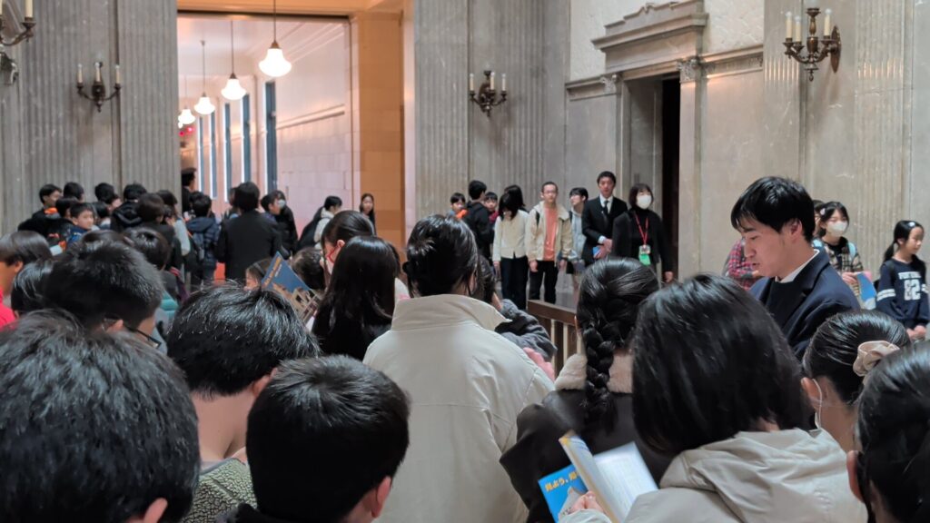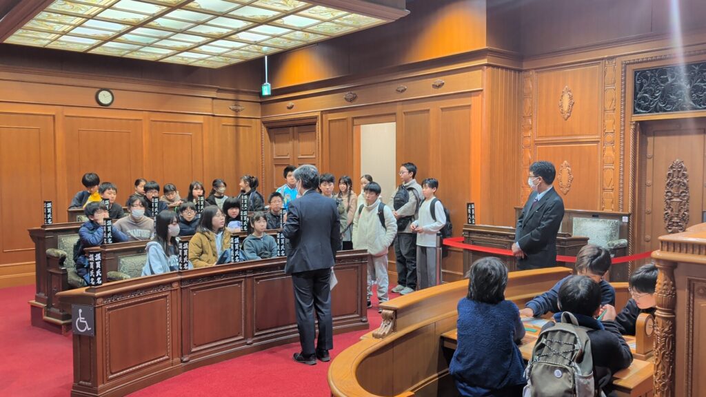 子どもたちは、建物の重厚さや議場の雰囲気を体いっぱいに感じながら、社会の仕組みが“自分ごと”として少し近くなったようでした。