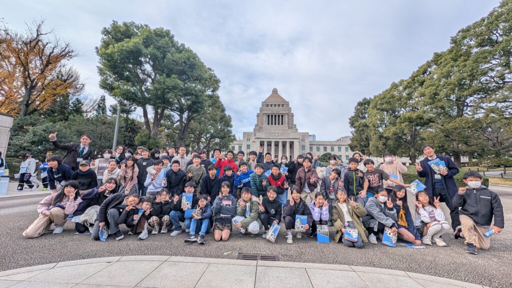 国会議事堂を背景に素敵な集合写真も撮影。今日の学びと感動が、将来「社会をより良くしたい」と願う心の芽へとつながっていくことを期待しています。