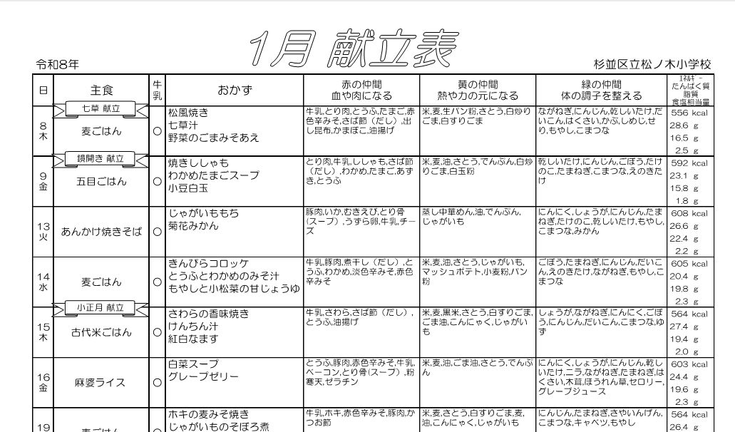 献立表(1月号)を掲載します。