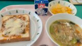 深川めし、イカのかりん揚げ、ちゃんこ汁、いもようかん、牛乳