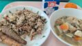 麦御飯の横にどんと置かれた餃子は、見た目のインパクトも抜群で、子どもたちの目を引いていました。ジャンボ餃子は、昭和六十年ごろに三重県津市で学校給食用として考えられたメニューです。一品で必要な栄養素をしっかり摂れること、給食室で手作りできること、そして何より子どもたちが楽しみにしてくれることを大切にして工夫されてきました。包む手間や調理時間を考え、あえて大きく仕上げた揚げ餃子は、給食ならではの知恵と優しさが詰まった一品です。