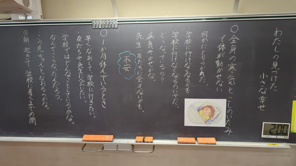 米良先生の研究授業 校内研究 コピー 2023.06.142025.02.12 米良先生による研究授業がありました。 4年生の道徳で、一ヶ月休むことになってしまった子の気持ちに寄り添いながら様々なことを考えていました。 済美教育センターの青木指導教授にご指導いただきました。