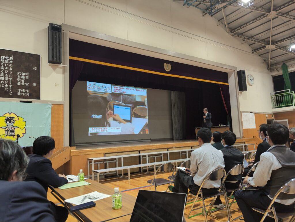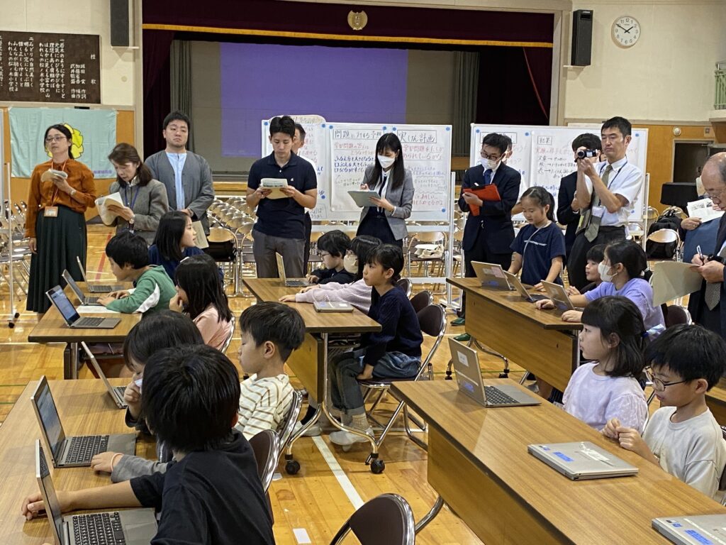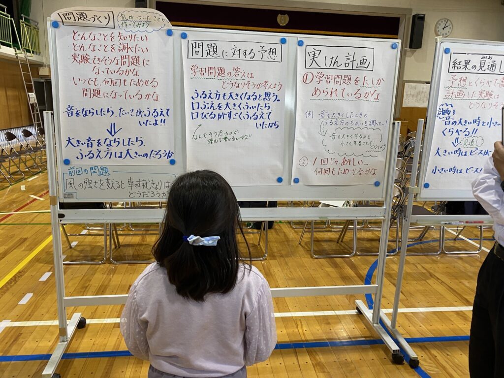 研究としては、一人一人が思い思いの活動を行いながらも、その様子をタブレット端末に入力していくことで、仲間とさらに交流を深めながら、学習を進めることができるのではないかという提案でした。