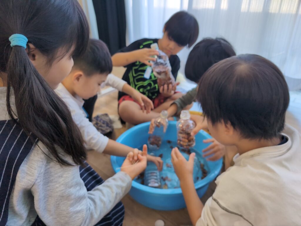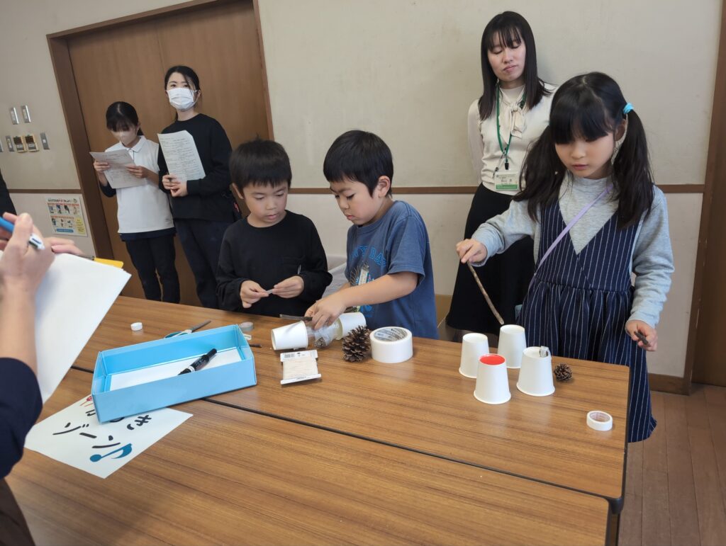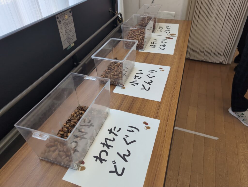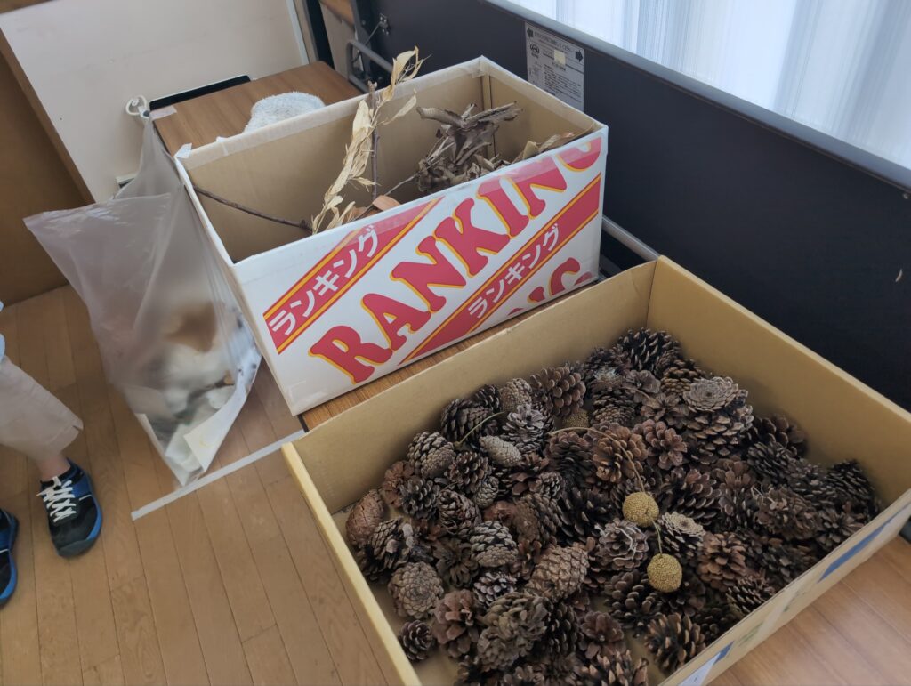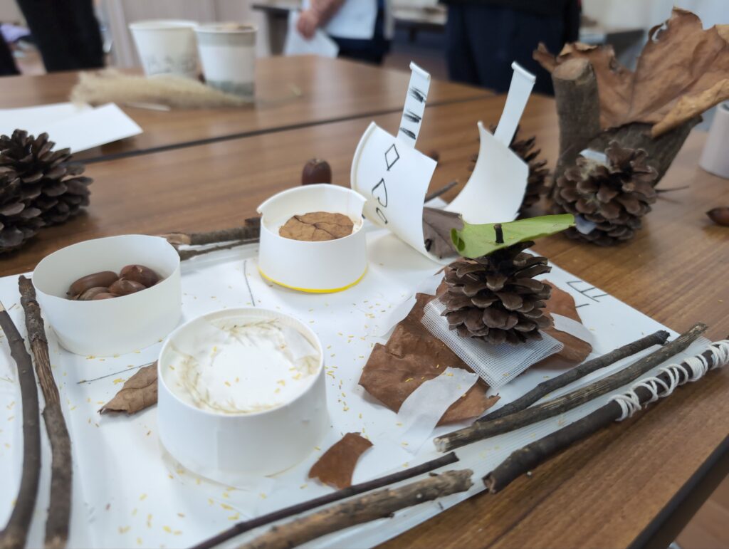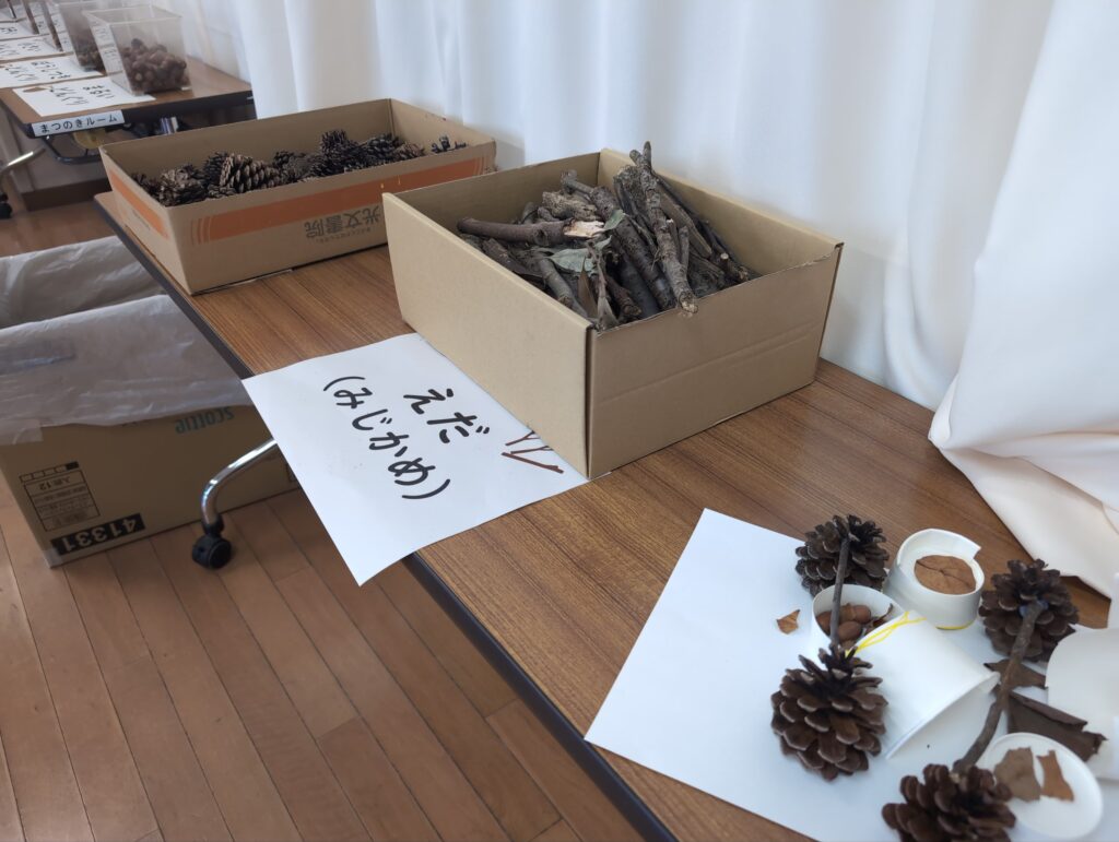 目標としては、秋の自然と関わる活動を通して、秋の特徴を見つけたり、自然を工夫して作品を作ったり、自然の変化に気付いたり、自分たちの生活を楽しくしようとしたりできるか、研究しました。