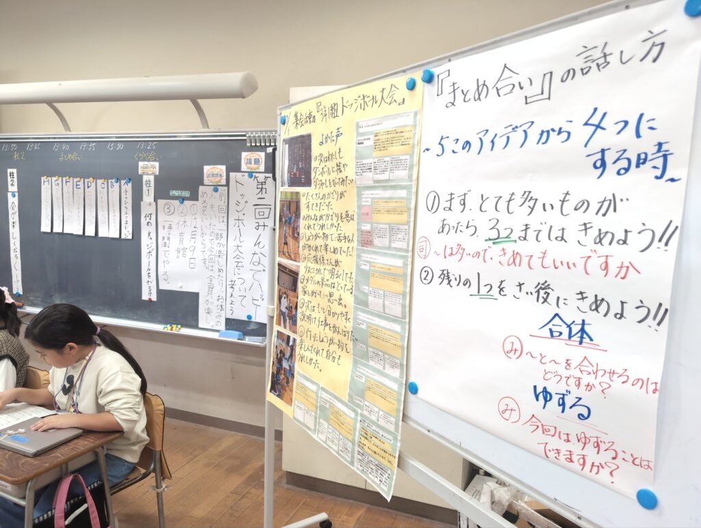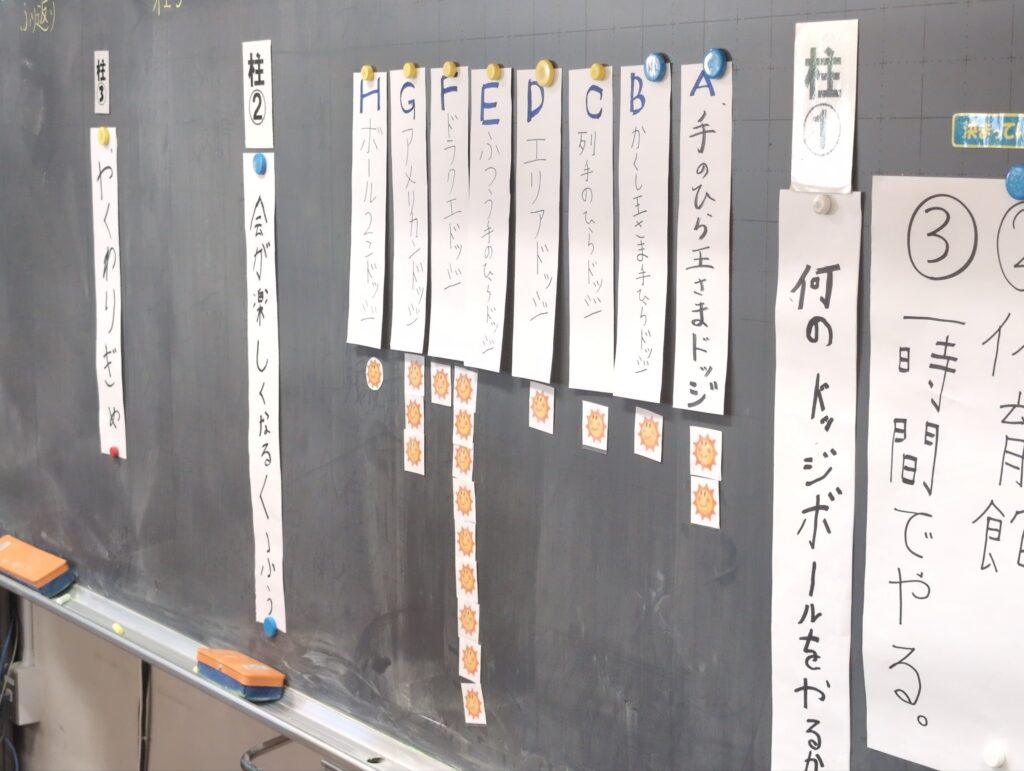 どんなドッジボールをしたいか、それぞれの意見を出し、どうやって、1つの意見にまとめていくか、学びました。